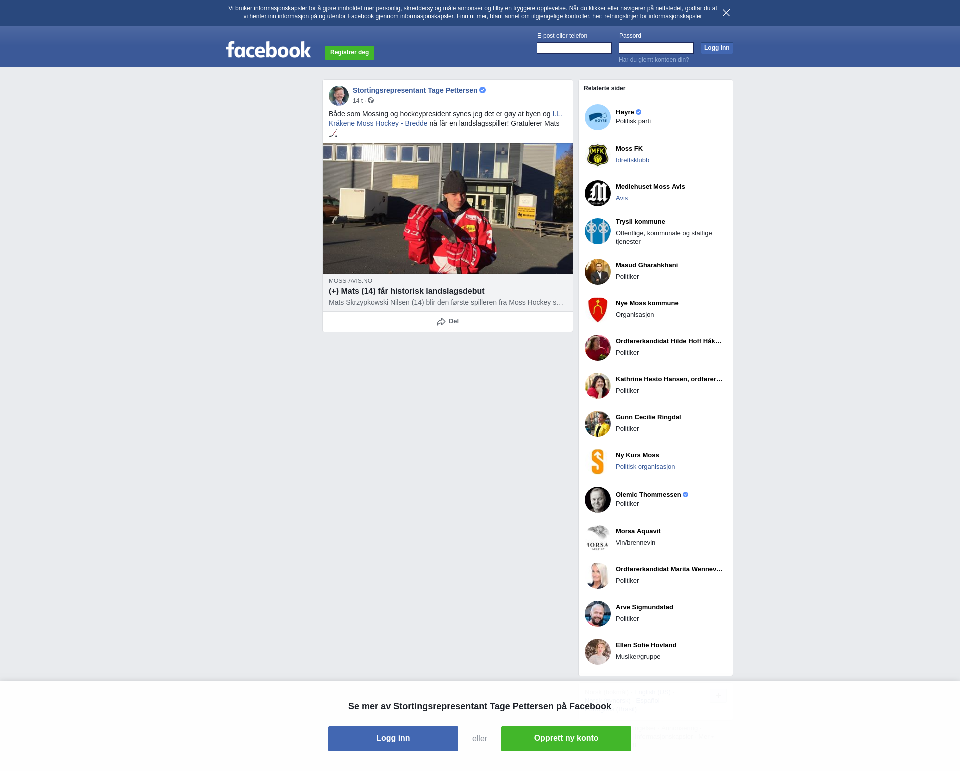 Både som Mossing og hockeypresident synes jeg det er gøy at byen og I.L. Kråkene Moss Hockey - Bredde nå får en landslagsspiller! Gratulerer Mats 🏒