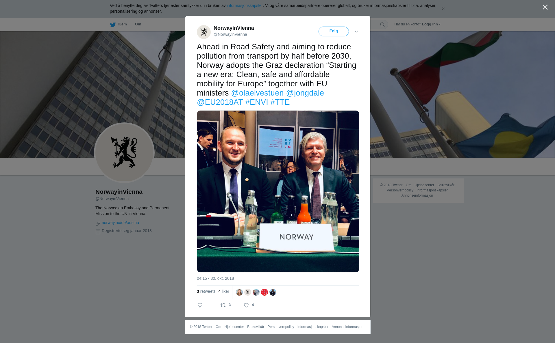 RT @NorwayinVienna: Ahead in Road Safety and aiming to reduce pollution from transport by half before 2030, Norway adopts the Graz declaration “Starting a new era: Clean, safe and affordable mobility for Europe” together with EU ministers @olaelvestuen @jongdale @EU2018AT #ENVI #TTE https://t.co/IM2JYLG0dx