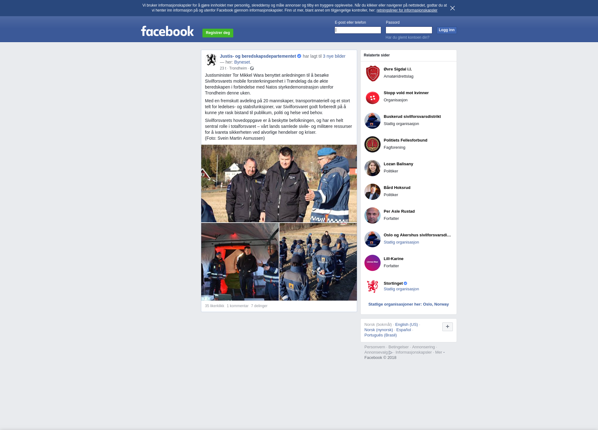 Justisminister Tor Mikkel Wara benyttet anledningen til å besøke Sivilforsvarets mobile forsterkningsenhet i Trøndelag da de økte beredskapen i forbindelse med Natos styrkedemonstrasjon utenfor Trondheim denne uken.