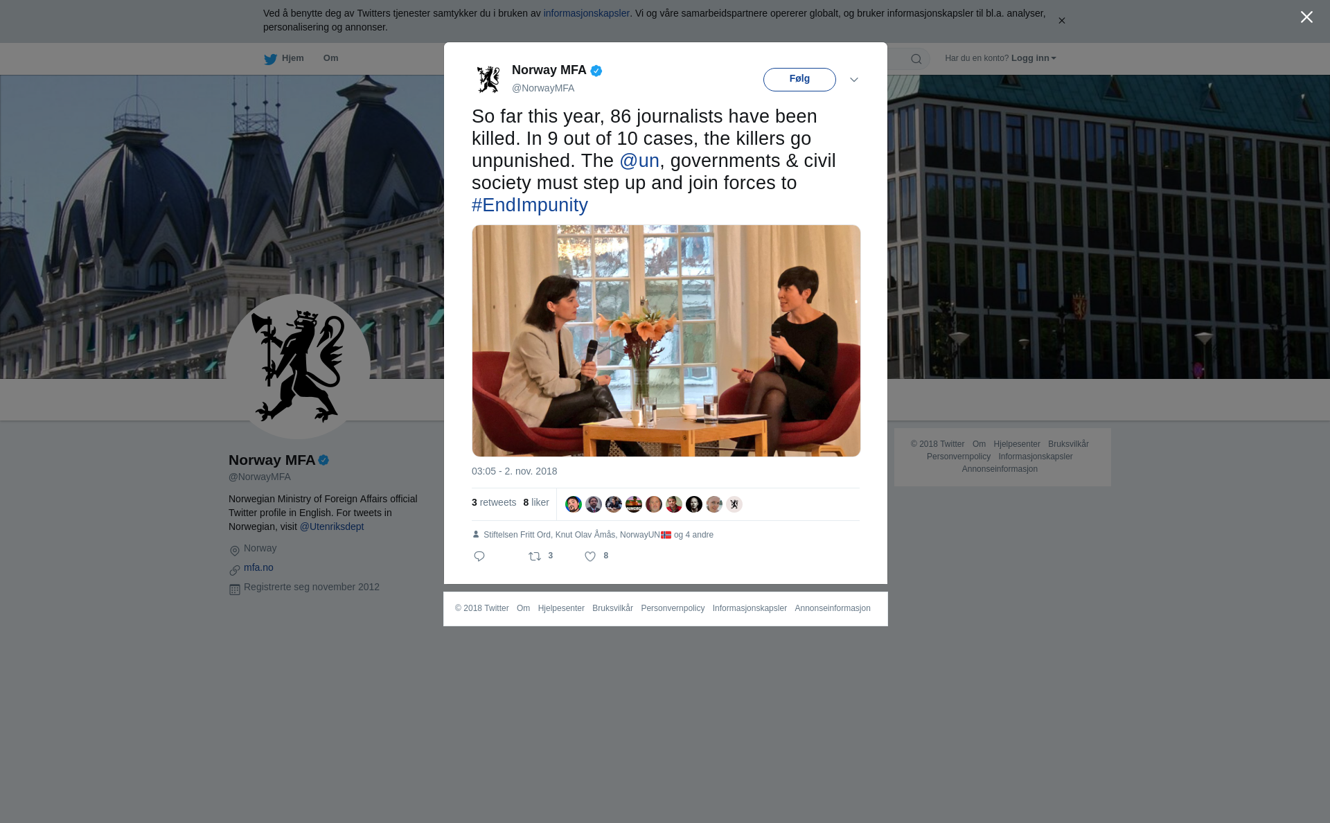 So far this year, 86 journalists have been killed. In 9 out of 10 cases, the killers go unpunished. The @un, governments & civil society must step up and join forces to #EndImpunity https://t.co/KqevTATYys