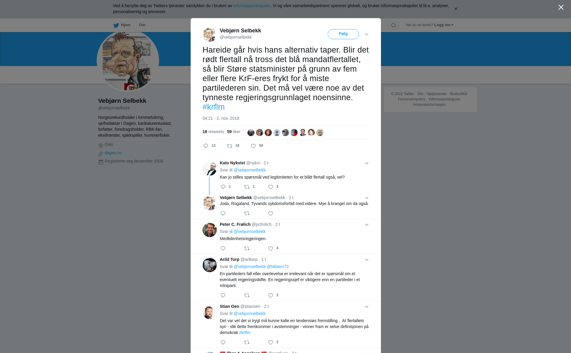 RT @vebjornselbekk: Hareide går hvis hans alternativ taper. Blir det rødt flertall nå tross det blå mandatflertallet, så blir Støre statsminister på grunn av fem eller flere KrF-eres frykt for å miste partilederen sin. Det må vel være noe av det tynneste regjeringsgrunnlaget noensinne. #krflm