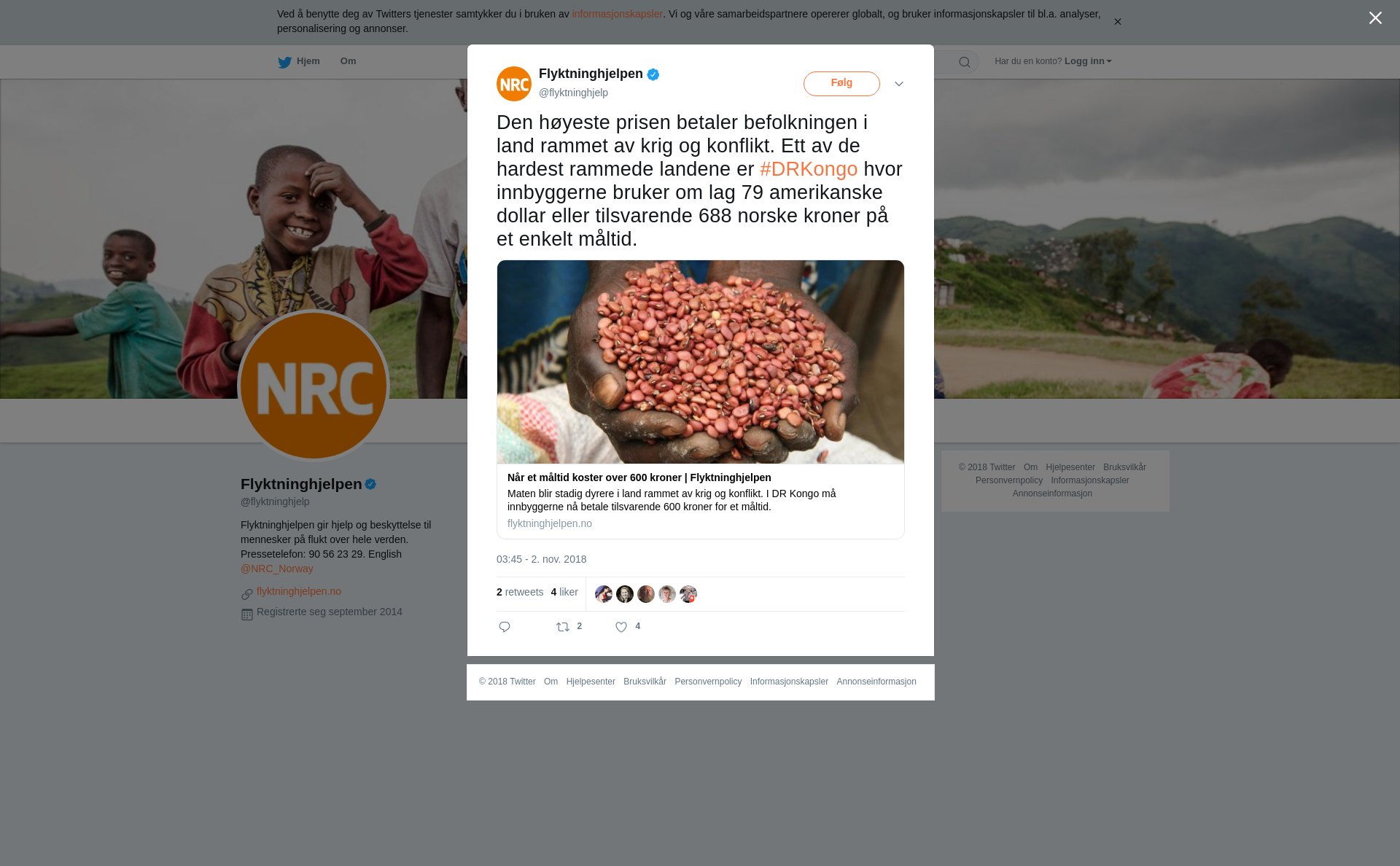 RT @flyktninghjelp: Den høyeste prisen betaler befolkningen i land rammet av krig og konflikt. Ett av de hardest rammede landene er #DRKongo hvor innbyggerne bruker om lag 79 amerikanske dollar eller tilsvarende 688 norske kroner på et enkelt måltid. https://t.co/m1j29d1CaA