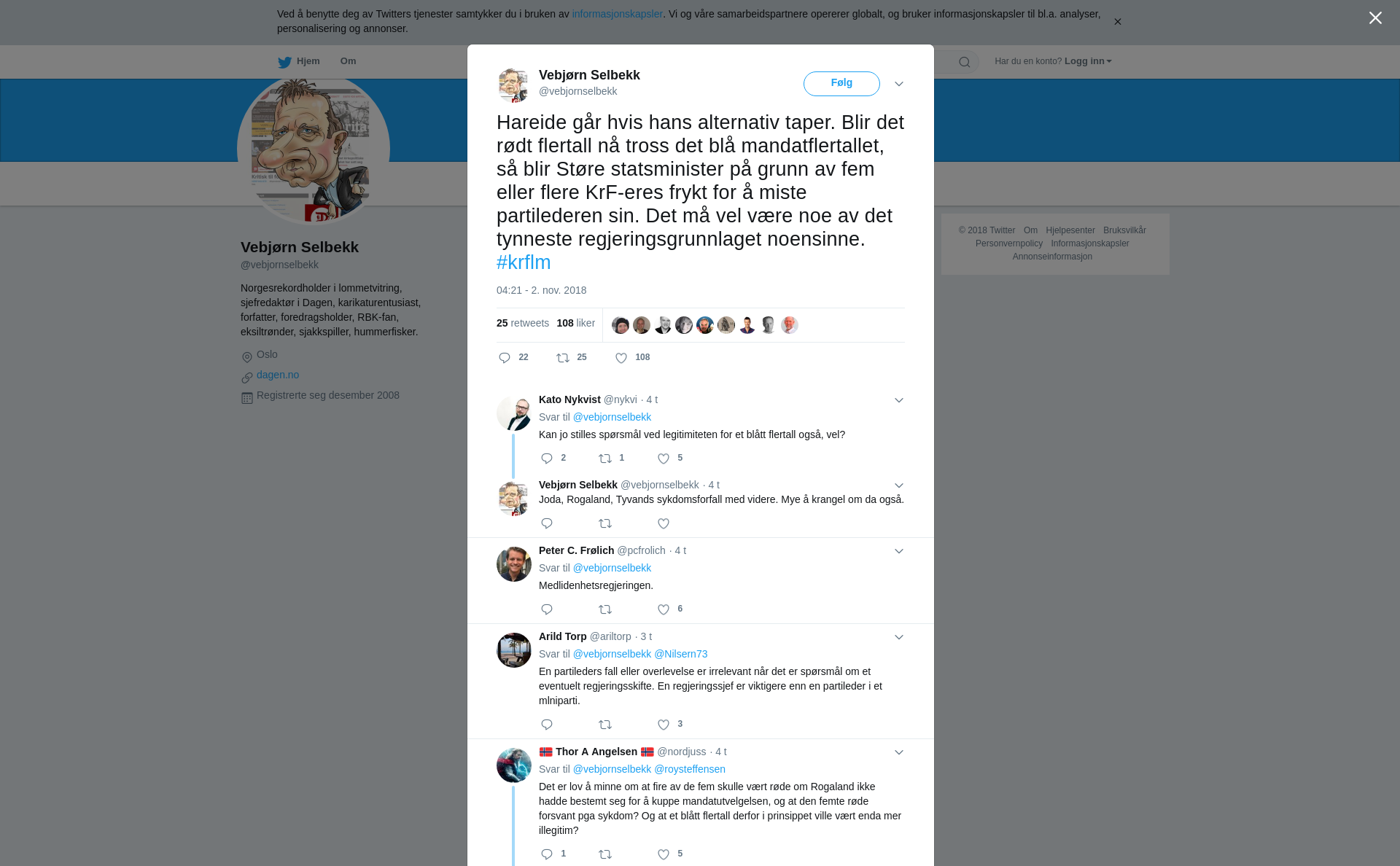RT @vebjornselbekk: Hareide går hvis hans alternativ taper. Blir det rødt flertall nå tross det blå mandatflertallet, så blir Støre statsminister på grunn av fem eller flere KrF-eres frykt for å miste partilederen sin. Det må vel være noe av det tynneste regjeringsgrunnlaget noensinne. #krflm