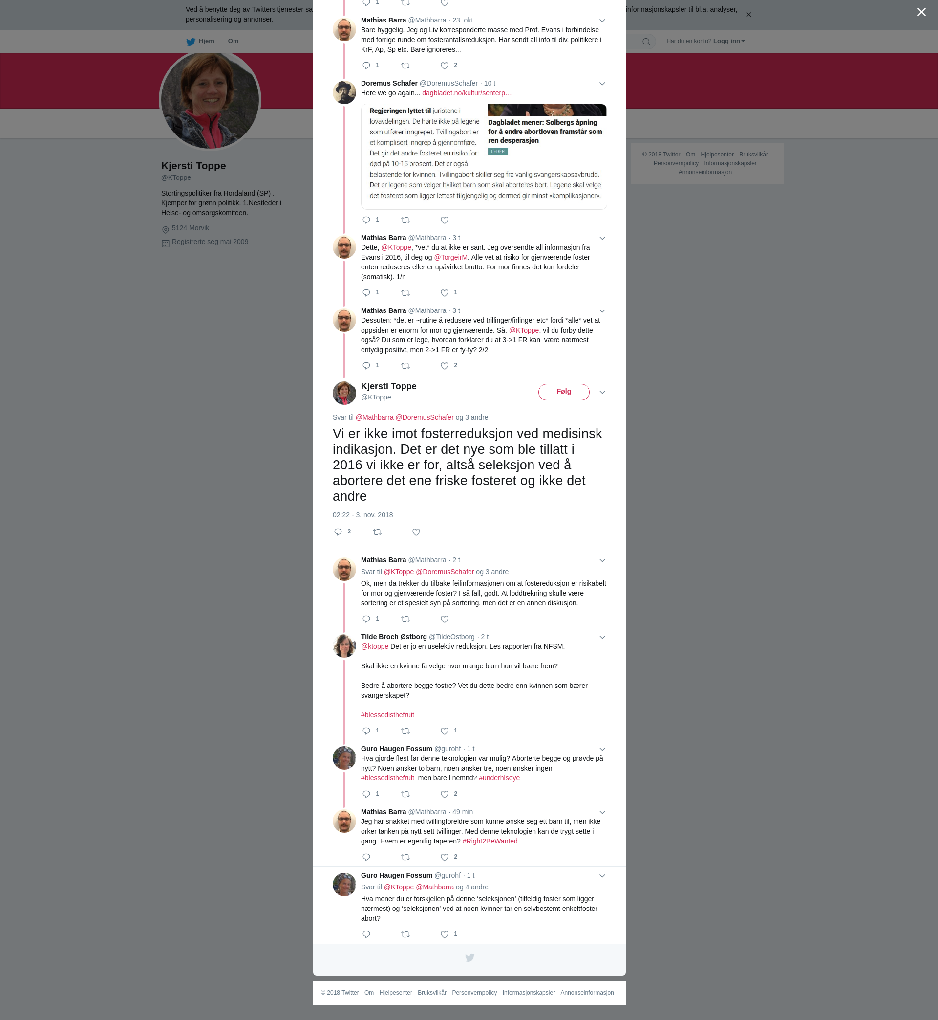 @Mathbarra @DoremusSchafer @TildeOstborg @erna_solberg @TorgeirM Vi er ikke imot fosterreduksjon ved medisinsk indikasjon. Det er det nye som ble tillatt i 2016 vi ikke er for, altså seleksjon ved å abortere det ene friske fosteret og ikke det andre