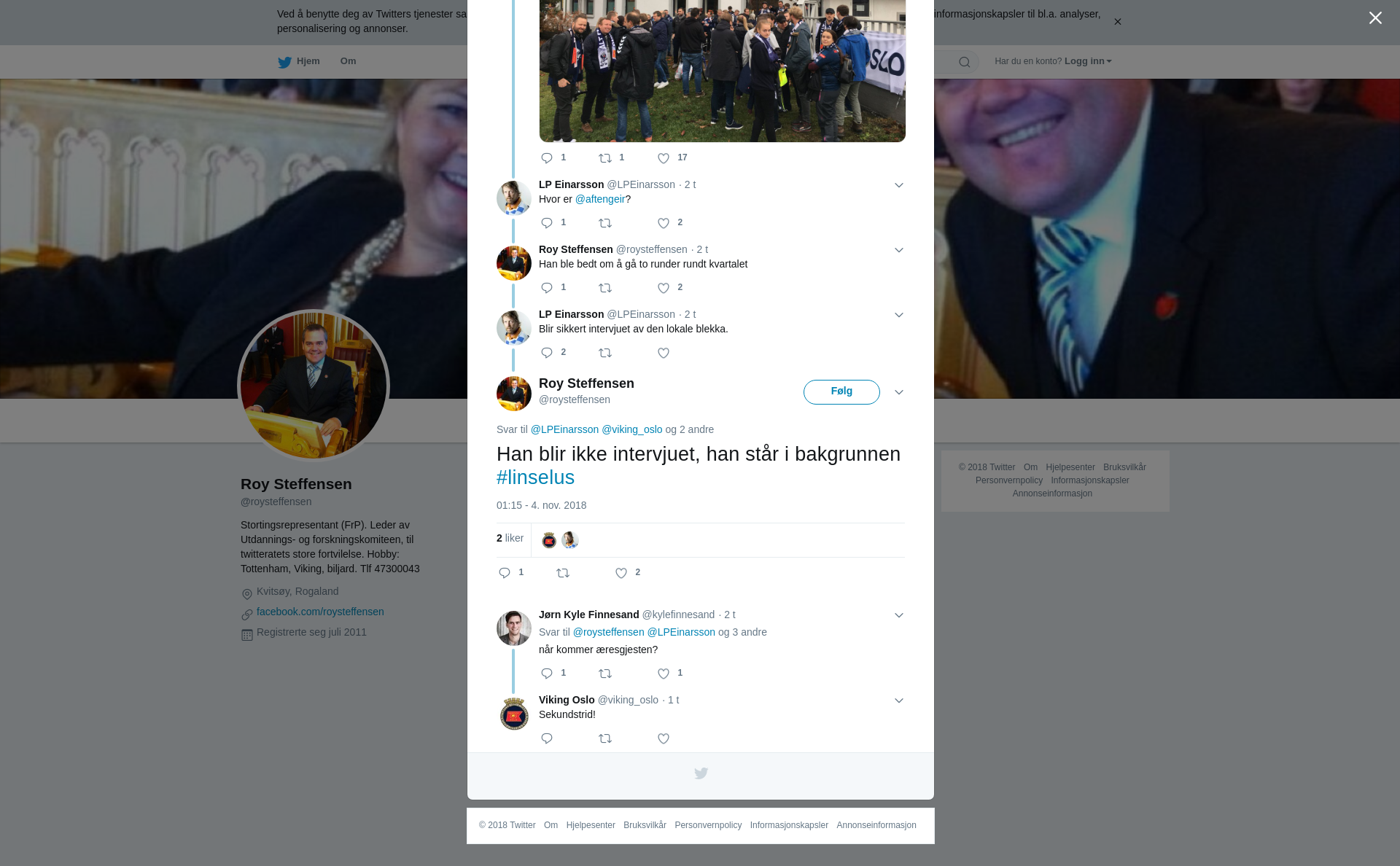 @LPEinarsson @viking_oslo @thimeper @aftengeir Han blir ikke intervjuet, han står i bakgrunnen #linselus