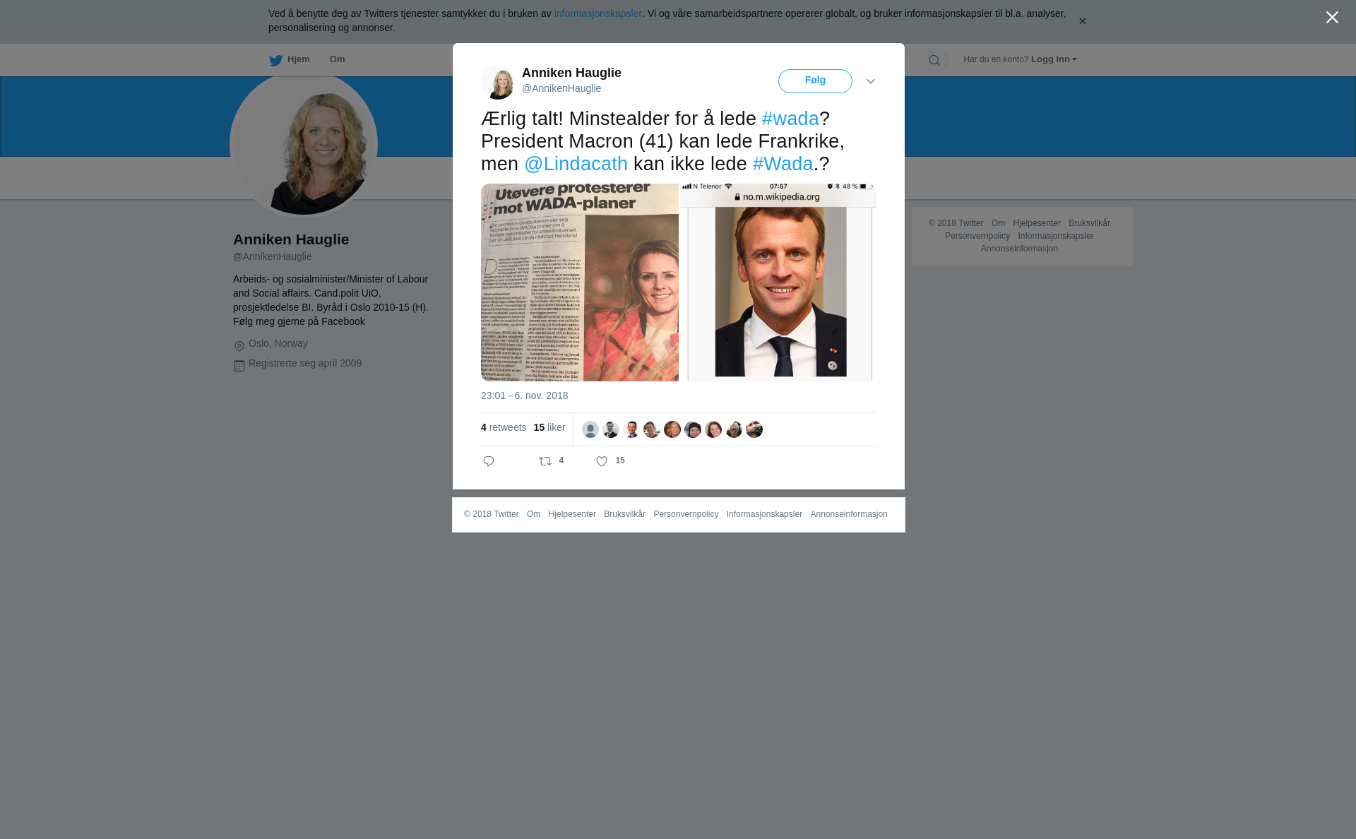 RT @AnnikenHauglie: Ærlig talt! Minstealder for å lede #wada? President Macron (41) kan lede Frankrike, men @Lindacath kan ikke lede #Wada.? https://t.co/74GzxcQZi7