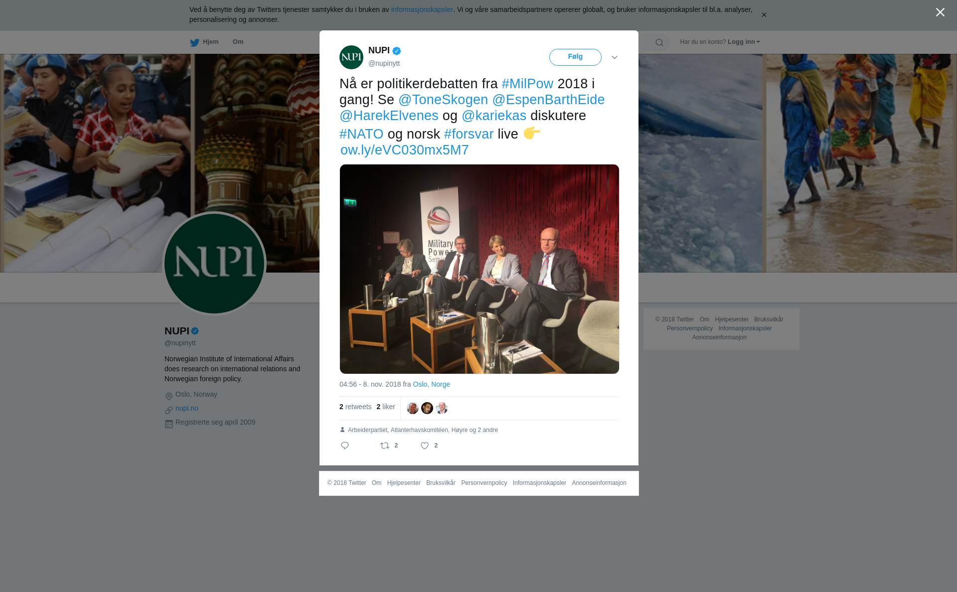RT @nupinytt: Nå er politikerdebatten fra #MilPow 2018 i gang! Se @ToneSkogen @EspenBarthEide @HarekElvenes og @kariekas diskutere #NATO og norsk #forsvar live 👉 https://t.co/yTXxoFIapz https://t.co/leGm7QE0Im