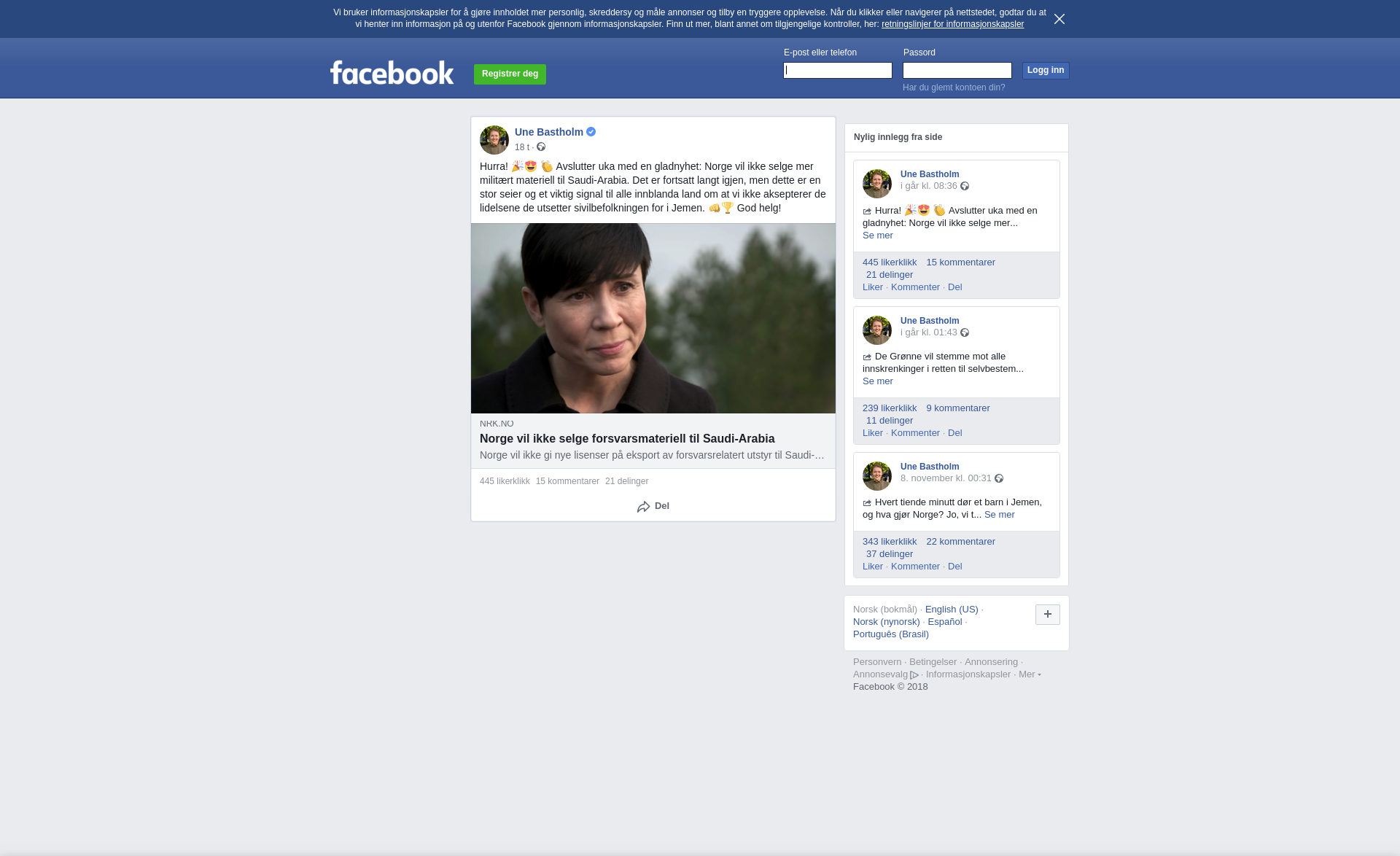 Hurra! 🎉😍 👏 Avslutter uka med en gladnyhet: Norge vil ikke selge mer militært materiell til Saudi-Arabia. Det er fortsatt langt igjen, men dette er en stor seier og et viktig signal til alle innblanda land om at vi ikke aksepterer de lidelsene de utsetter sivilbefolkningen for i Jemen. 👊🏆 God helg!