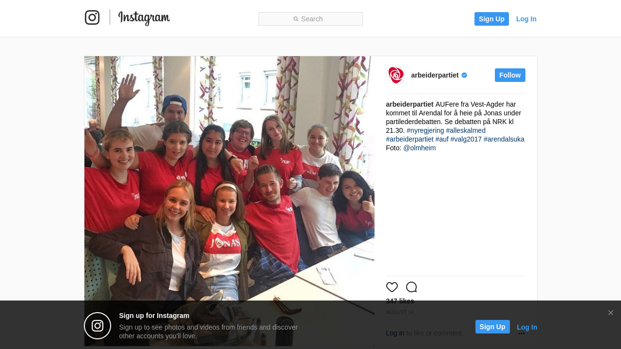 AUFere fra Vest-Agder har kommet til Arendal for å heie på Jonas under partilederdebatten. Se debatten på NRK kl 21.30. #nyregjering #alleskalmed #arbeiderpartiet #auf #valg2017 #arendalsuka Foto: @olmheim