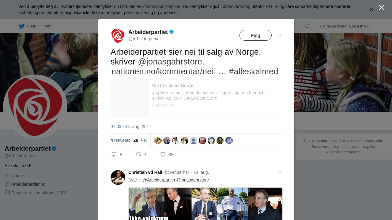 Arbeiderpartiet sier nei til salg av Norge, skriver @jonasgahrstore. https://t.co/jrNue91i8t #alleskalmed