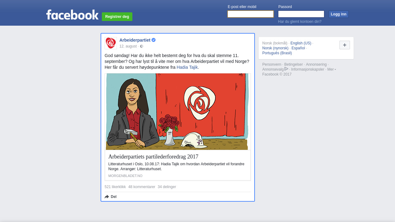 Litteraturhuset i Oslo, 10.08.17: Hadia Tajik om hvordan Arbeiderpartiet vil forandre Norge. Arrangør: Litteraturhuset.