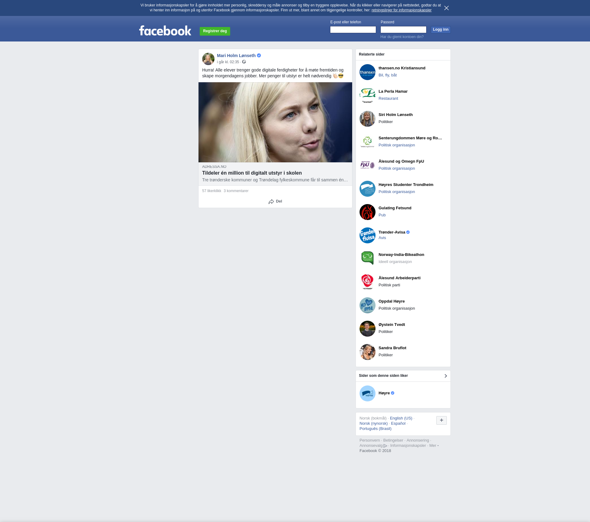 Orginalt innlegg på Facebook
