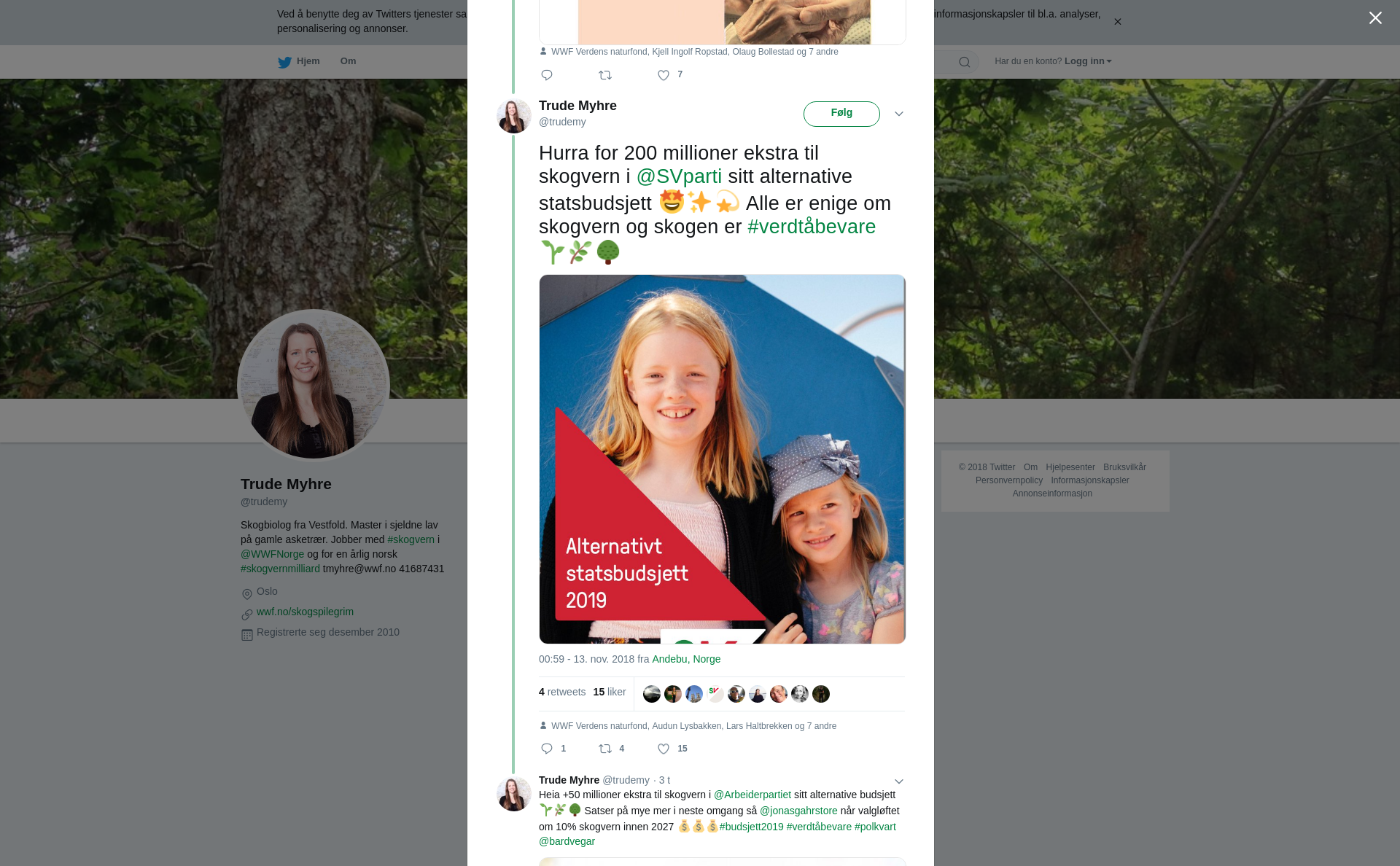 RT @trudemy: Hurra for 200 millioner ekstra til skogvern i @SVparti sitt alternative statsbudsjett 🤩✨💫 Alle er enige om skogvern og skogen er #verdtåbevare 🌱🌿🌳 https://t.co/o4GyjHspVF