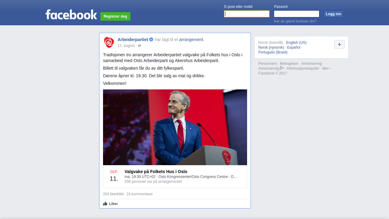 Tradisjonen tro arrangerer Arbeiderpartiet valgvake på Folkets hus i Oslo i samarbeid med Oslo Arbeiderparti og Akershus Arbeiderparti.