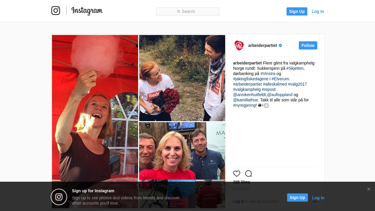 Flere glimt fra valgkamphelg Norge rundt: Sukkerspinn på #Skjetten, dørbanking på #Vinstra og #jaktogfiskedagene i #Elverum. #arbeiderpartiet #alleskalmed #valg2017 #valgkamphelg #repost: @annikenhuitfeldt,@aufioppland og @kamillathue. Takk til alle som står på for #nyregjering! 🌹👍🏻