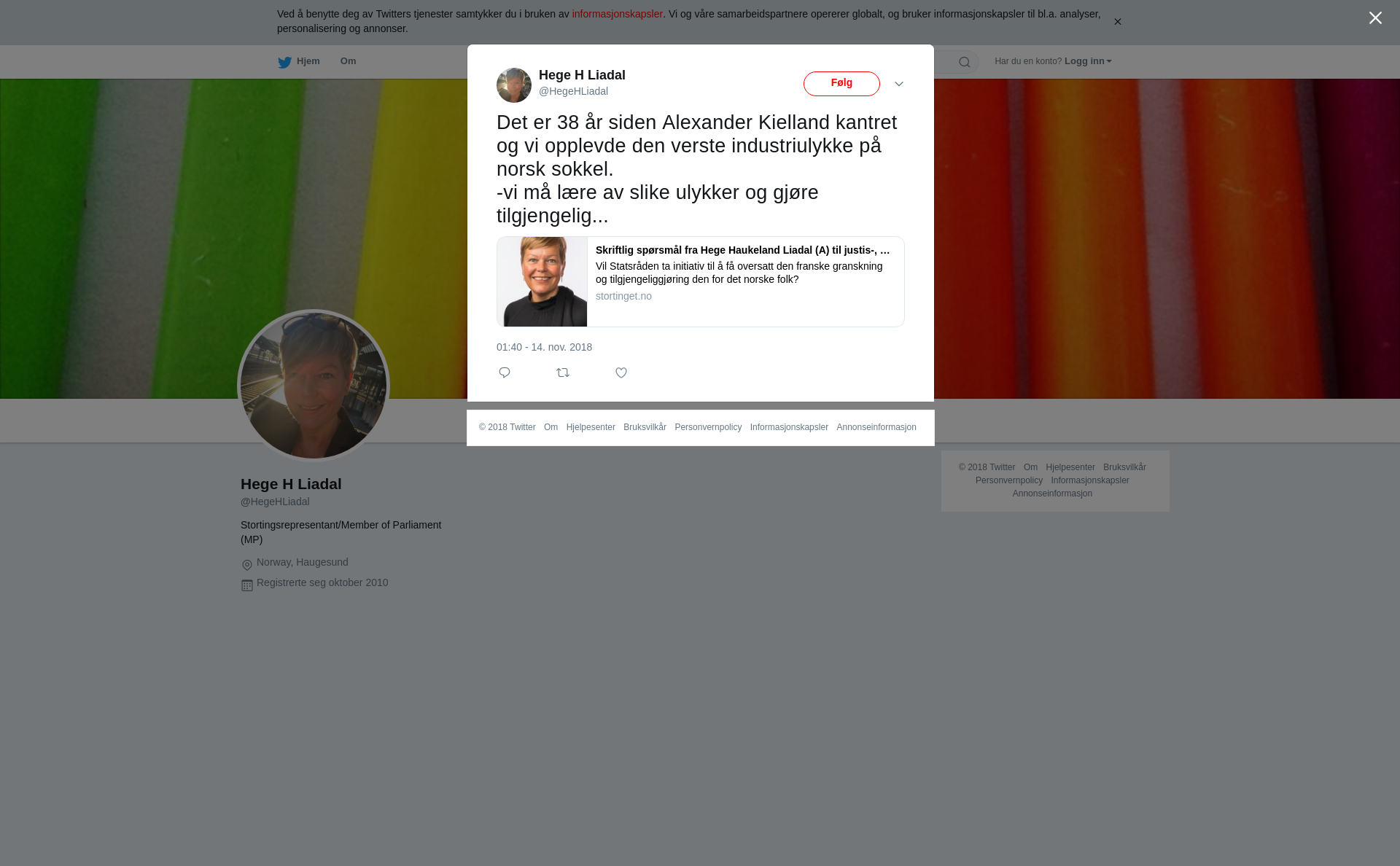 Det er 38 år siden Alexander Kielland kantret og vi opplevde den verste industriulykke på norsk sokkel. -vi må lære av slike ulykker og gjøre tilgjengelig... https://t.co/vLqcGyYZQf