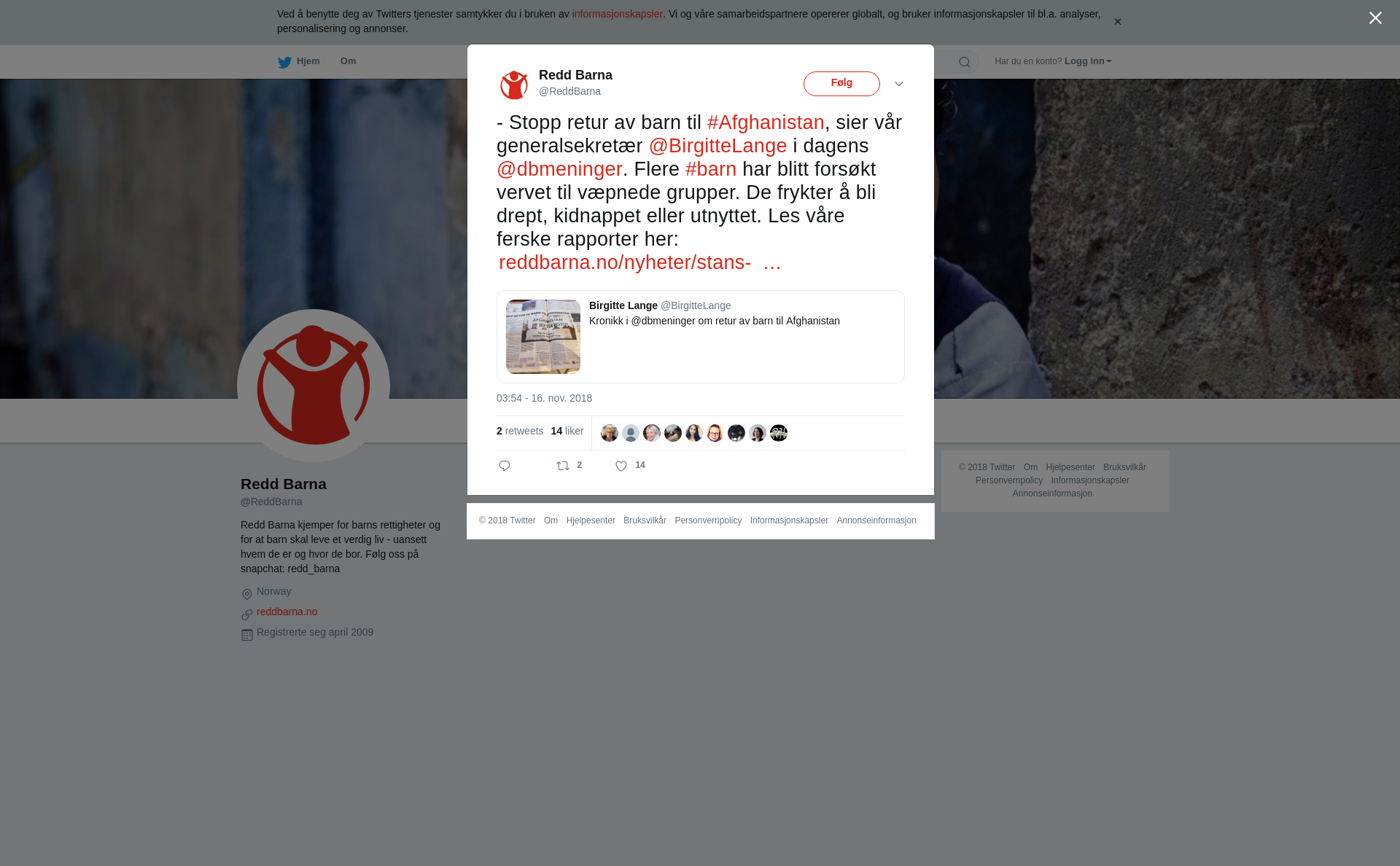 RT @ReddBarna: - Stopp retur av barn til #Afghanistan, sier vår generalsekretær @BirgitteLange i dagens @dbmeninger. Flere #barn har blitt forsøkt vervet til væpnede grupper. De frykter å bli drept, kidnappet eller utnyttet. Les våre ferske rapporter her: https://t.co/z3gBxzpB1E https://t.co/C5ve9vLjaQ