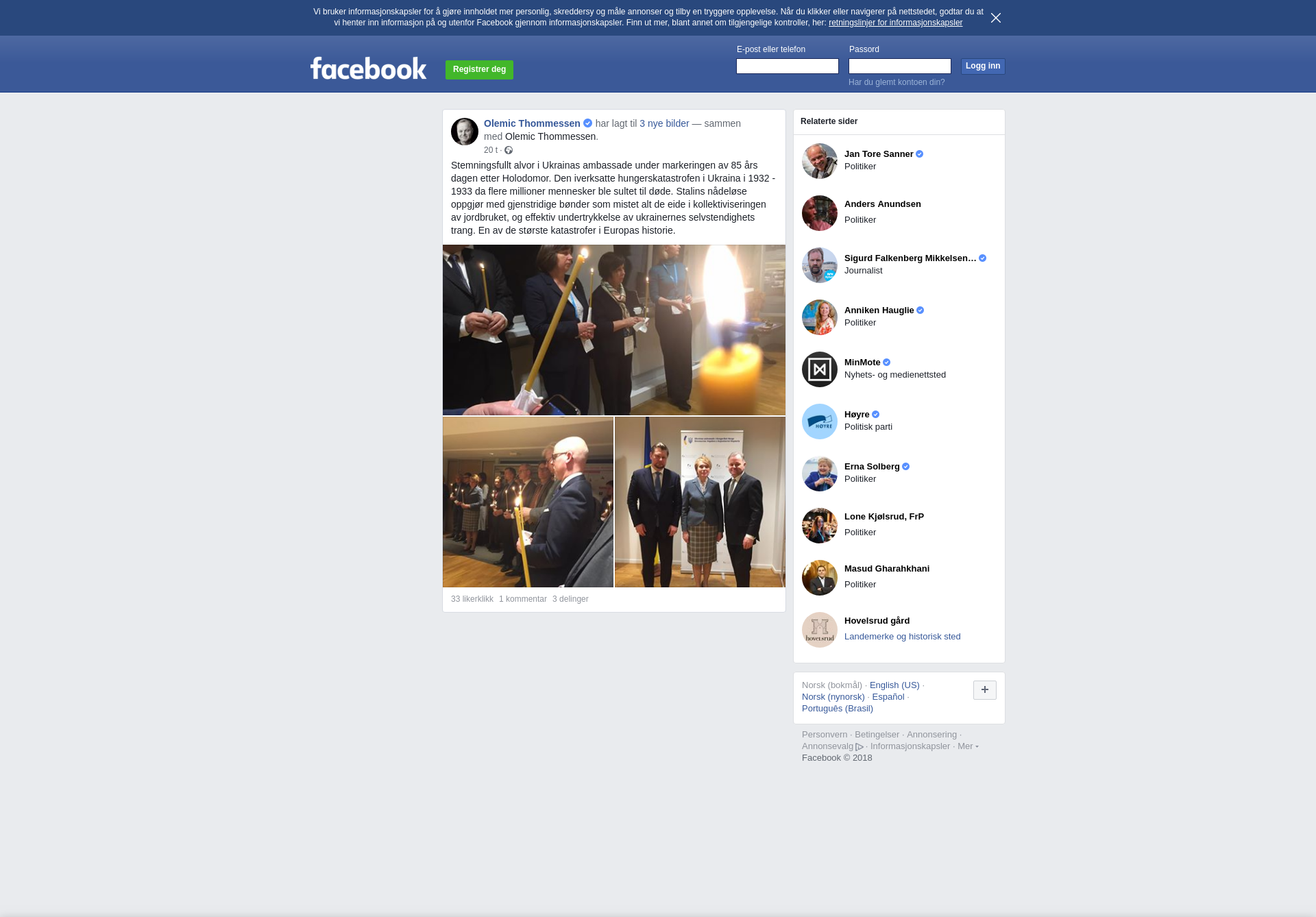 Stemningsfullt alvor i Ukrainas ambassade under markeringen av 85 års dagen etter Holodomor. Den iverksatte hungerskatastrofen i Ukraina i 1932 - 1933 da flere millioner mennesker ble sultet til døde. Stalins nådeløse oppgjør med gjenstridige bønder som mistet alt de eide i kollektiviseringen av jordbruket, og effektiv undertrykkelse av ukrainernes selvstendighets trang. En av de største katastrofer i Europas historie.