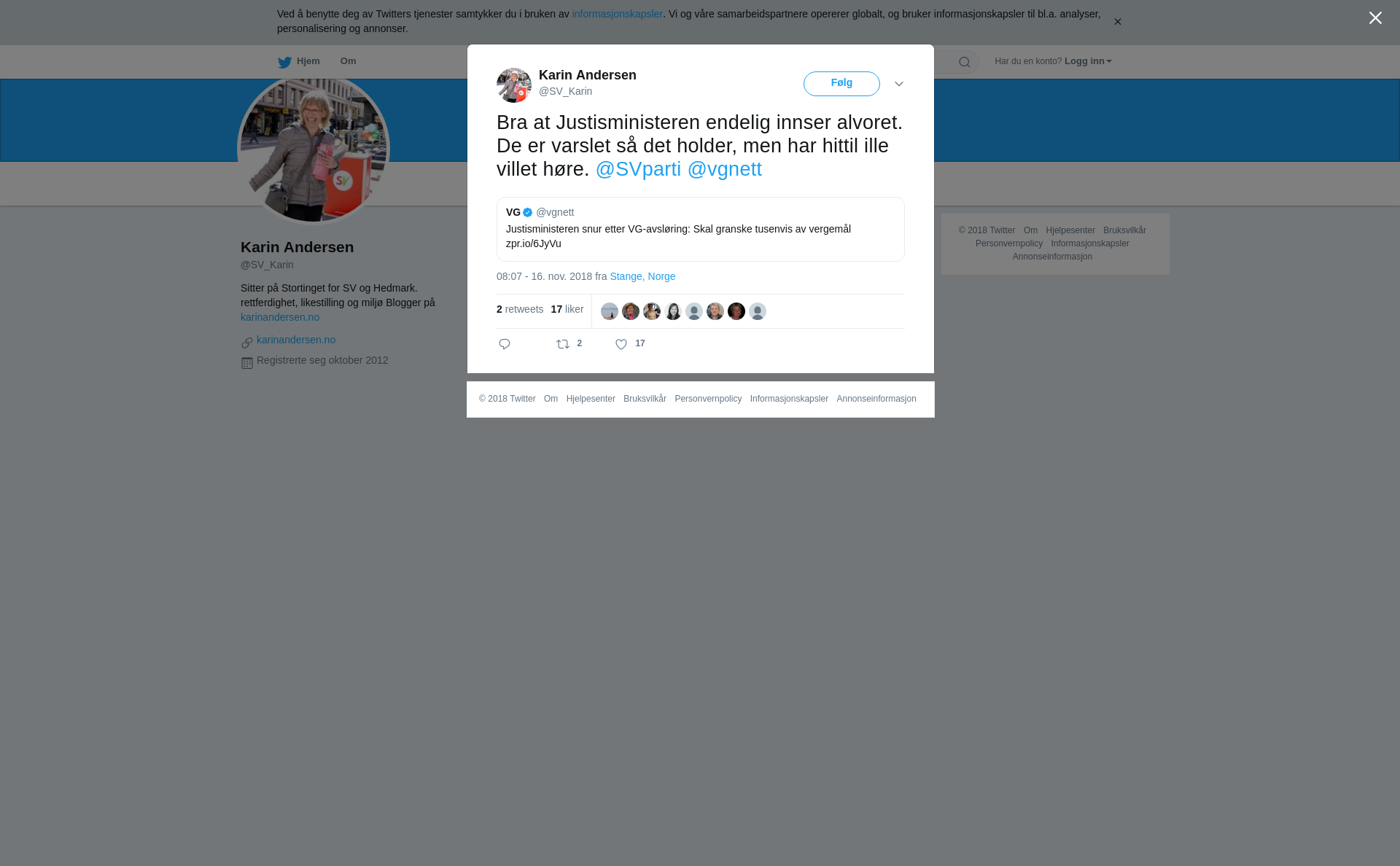 RT @SV_Karin: Bra at Justisministeren endelig innser alvoret. De er varslet så det holder, men har hittil ille villet høre. @SVparti @vgnett https://t.co/H8q8URhFB9
