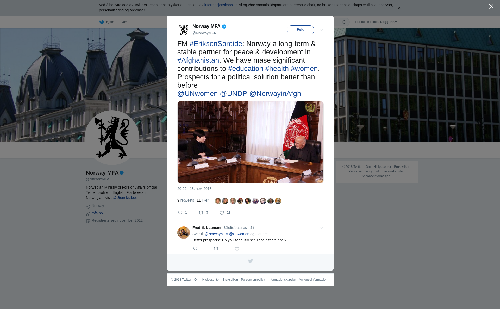 FM #EriksenSoreide: Norway a long-term & stable partner for peace & development in #Afghanistan. We have mase significant contributions to #education #health #women. Prospects for a political solution better than before