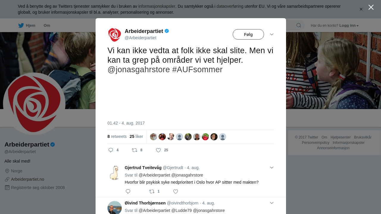 Et av målene er en tilgjengelig skolehelsetjeneste for alle elever hver dag. – Det er et alvorlig samfunnsproblem når mange av våre unge, med hele livet foran seg, synker ned i mørket. Vi kan ikke vedta at folk ikke skal slite. Men vi kan ta grep på områder vi vet hjelper. Vi skal hjelpe flere unge før det blir helt mørkt. Og vi skal hjelpe flere unge ut av mørket, sier Støre. Støre er bekymret for at altfor mange unge sliter og faller utenfor. Et økende antall opplever psykisk sykdom, og flere unge blir