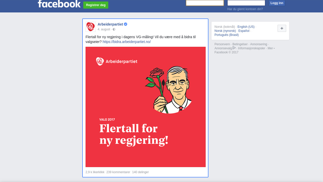 Flertall for ny regjering i dagens VG-måling! Vil du være med å bidra til valgseier? https://bidra.arbeiderpartiet.no/