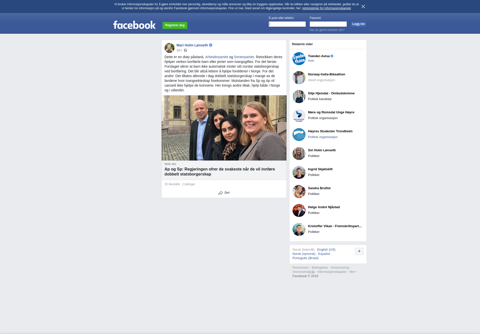 Dette er en drøy påstand, Arbeiderpartiet og Senterpartiet. Retorikken deres hjelper verken bortførte barn eller jenter som tvangsgiftes. For det første: Forslaget sikrer at barn ikke automatisk mister sitt norske statsborgerskap ved bortføring. Det blir altså lettere å hjelpe forelderen i Norge. For det andre: Det tillates allerede i dag dobbelt statsborgerskap i mange av de landene hvor tvangsekteskap forekommer. Motstanden fra Sp og Ap vil uansett ikke hjelpe de kvinnene. Her trengs andre tiltak, hjelp både i Norge og i utlandet.
