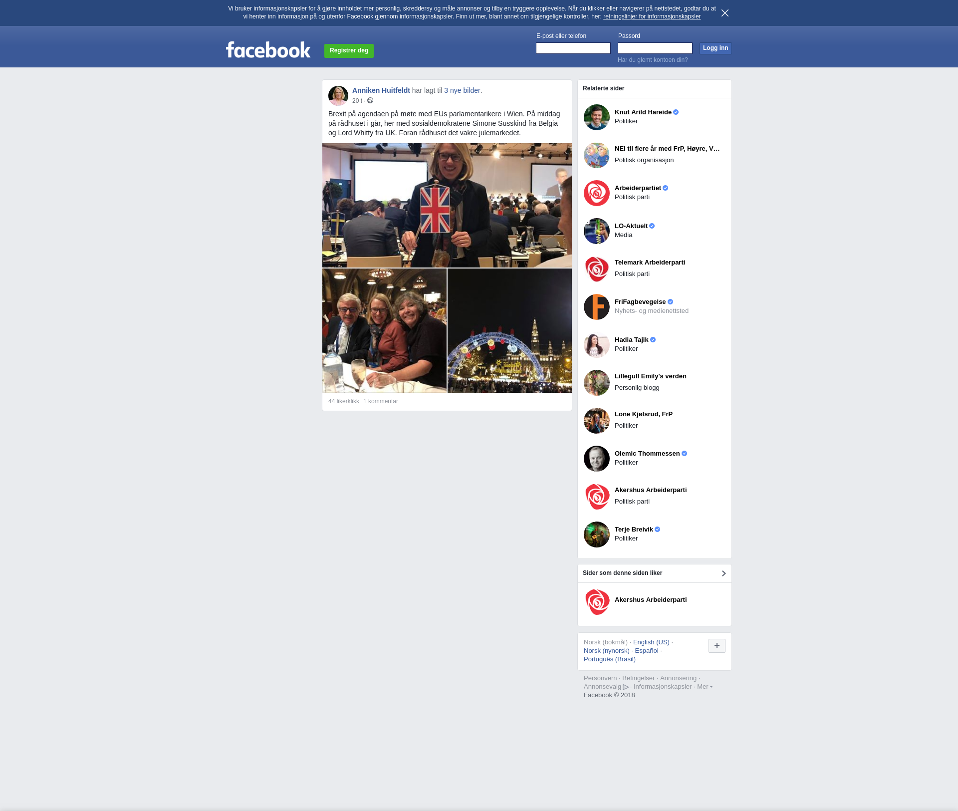 Brexit på agendaen på møte med EUs parlamentarikere i Wien. På middag på rådhuset i går, her med sosialdemokratene Simone Susskind fra Belgia og Lord Whitty fra UK. Foran rådhuset det vakre julemarkedet.