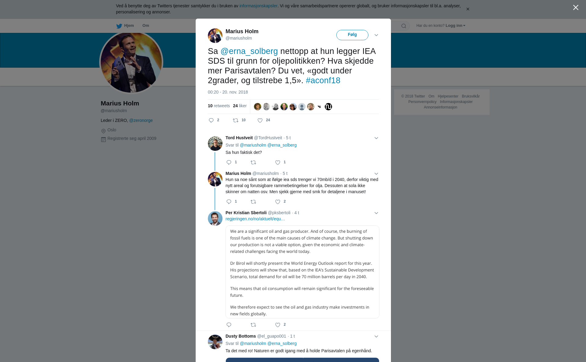 RT @mariusholm: Sa @erna_solberg nettopp at hun legger IEA SDS til grunn for oljepolitikken? Hva skjedde mer Parisavtalen? Du vet, «godt under 2grader, og tilstrebe 1,5». #aconf18