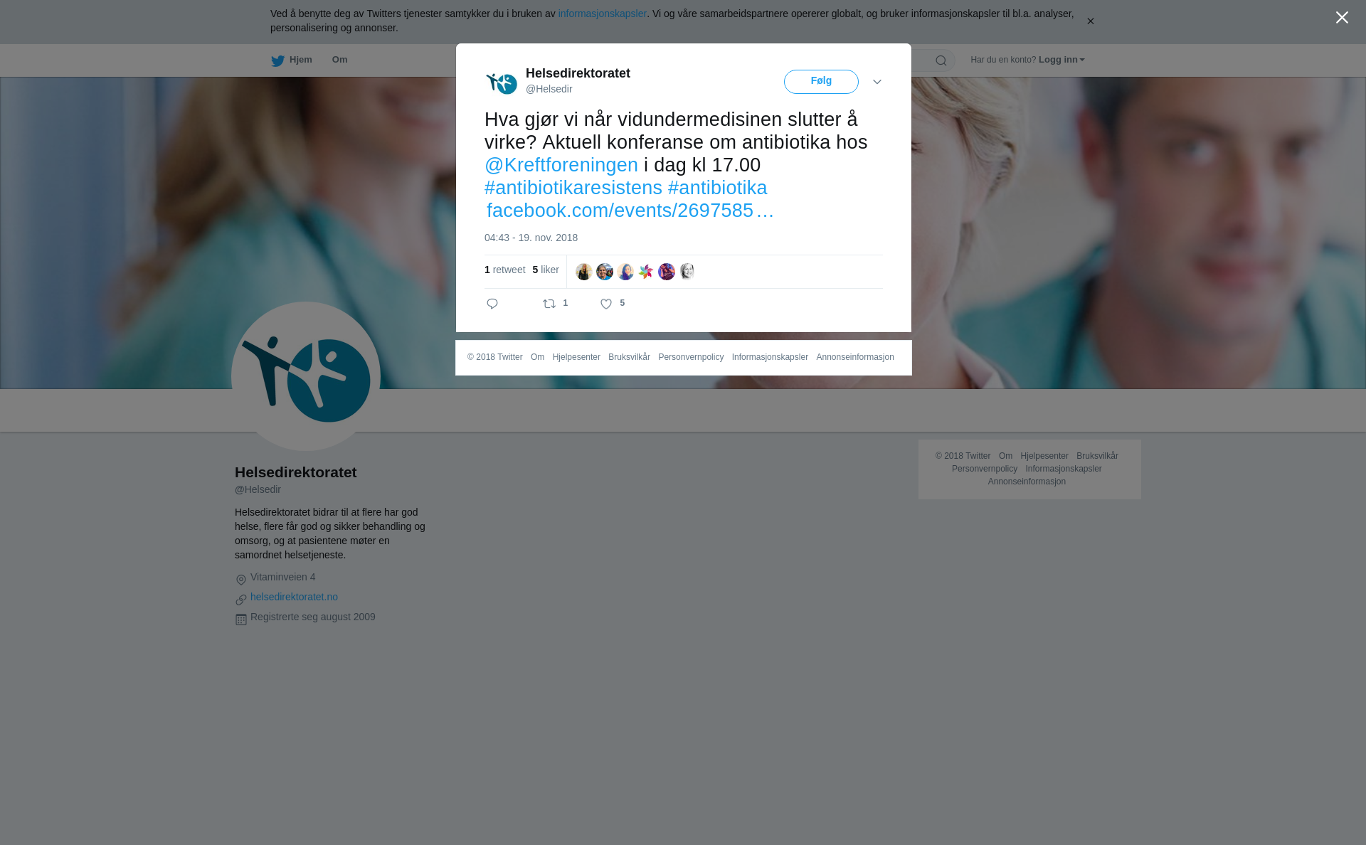 RT @Helsedir: Hva gjør vi når vidundermedisinen slutter å virke? Aktuell konferanse om antibiotika hos @Kreftforeningen i dag kl 17.00 #antibiotikaresistens #antibiotika https://t.co/5LmpVa4QtW