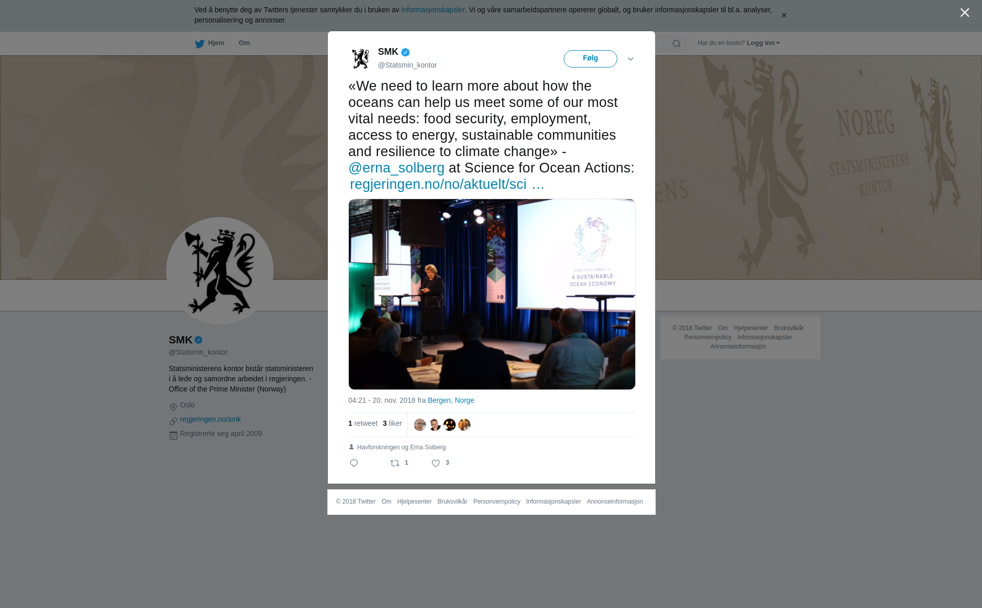 «We need to learn more about how the oceans can help us meet some of our most vital needs: food security, employment, access to energy, sustainable communities and resilience to climate change» - @erna_solberg at Science for Ocean Actions: https://t.co/hA51exroUI https://t.co/98pf6KDroy