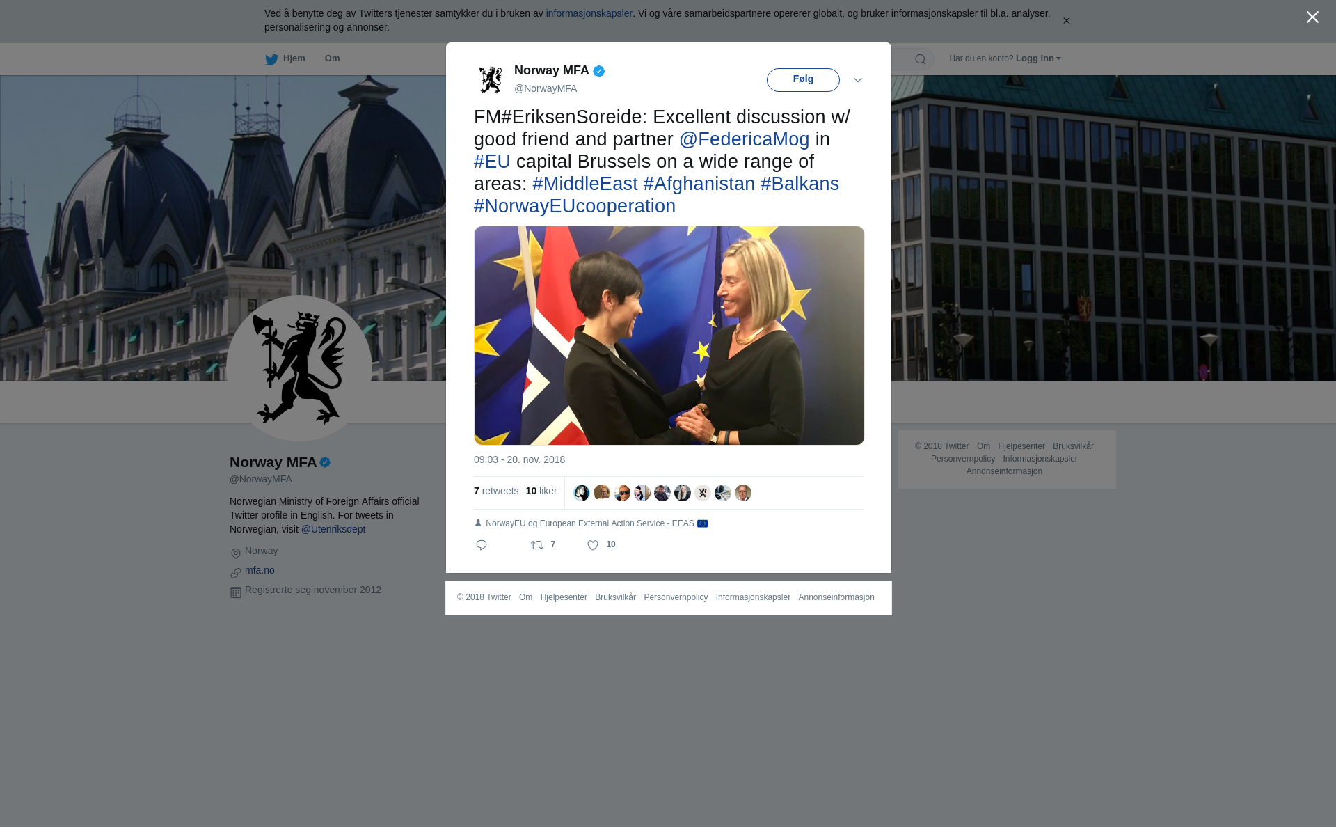 FM#EriksenSoreide: Excellent discussion w/ good friend and partner @FedericaMog in #EU capital Brussels on a wide range of areas: #MiddleEast #Afghanistan #Balkans #NorwayEUcooperation https://t.co/q6UGAPGZS2