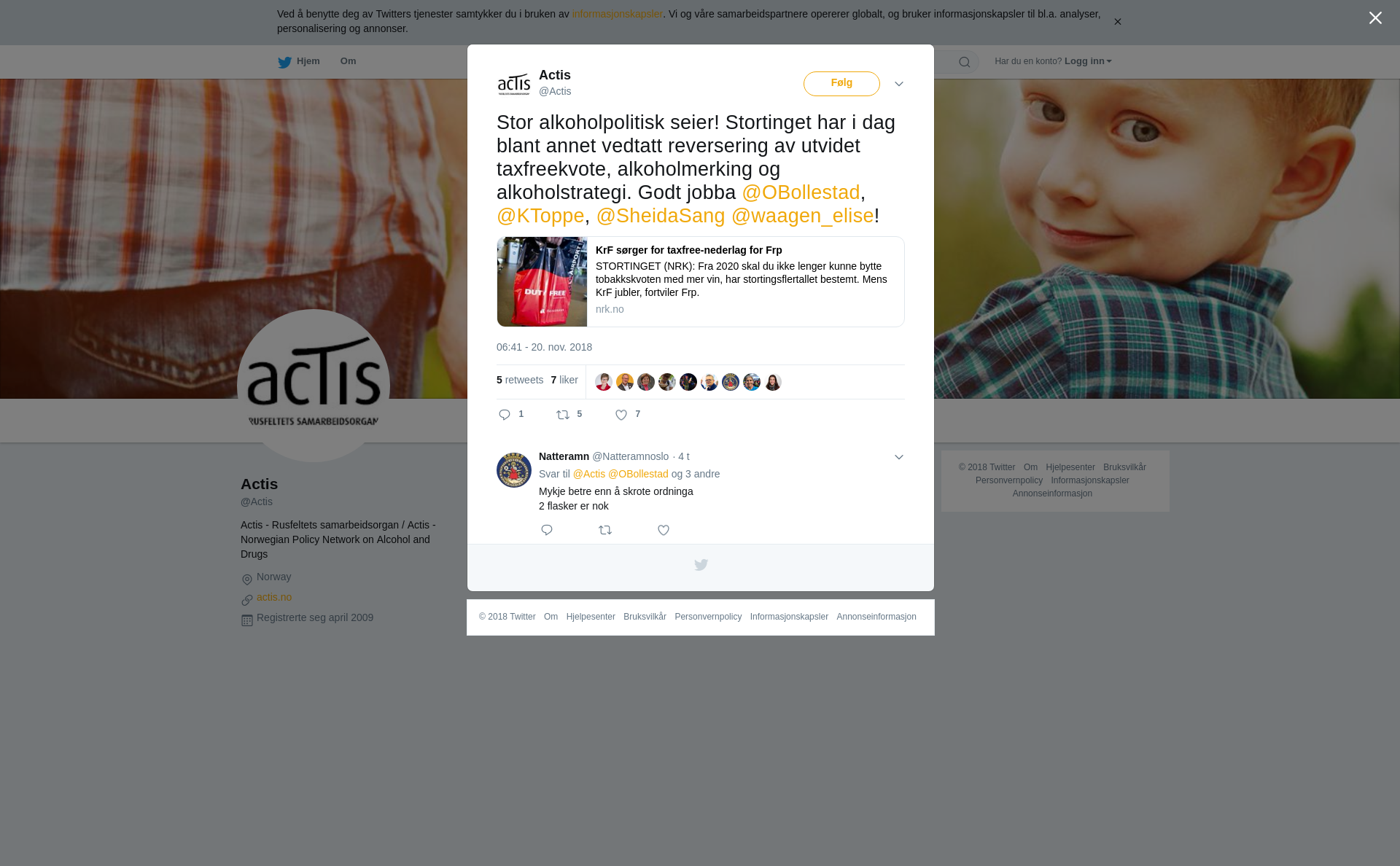 RT @Actis: Stor alkoholpolitisk seier! Stortinget har i dag blant annet vedtatt reversering av utvidet taxfreekvote, alkoholmerking og alkoholstrategi. Godt jobba @OBollestad, @KToppe, @SheidaSang @waagen_elise!