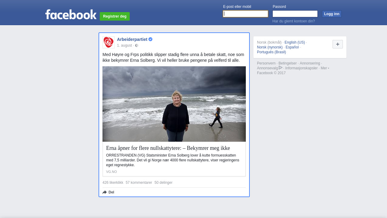 ORRESTRANDEN (VG) Statsminister Erna Solberg lover å kutte formuesskatten med 7,5 milliarder. Det vil gi Norge nær 4000 flere nullskattytere, viser regjeringens eget regnestykke.