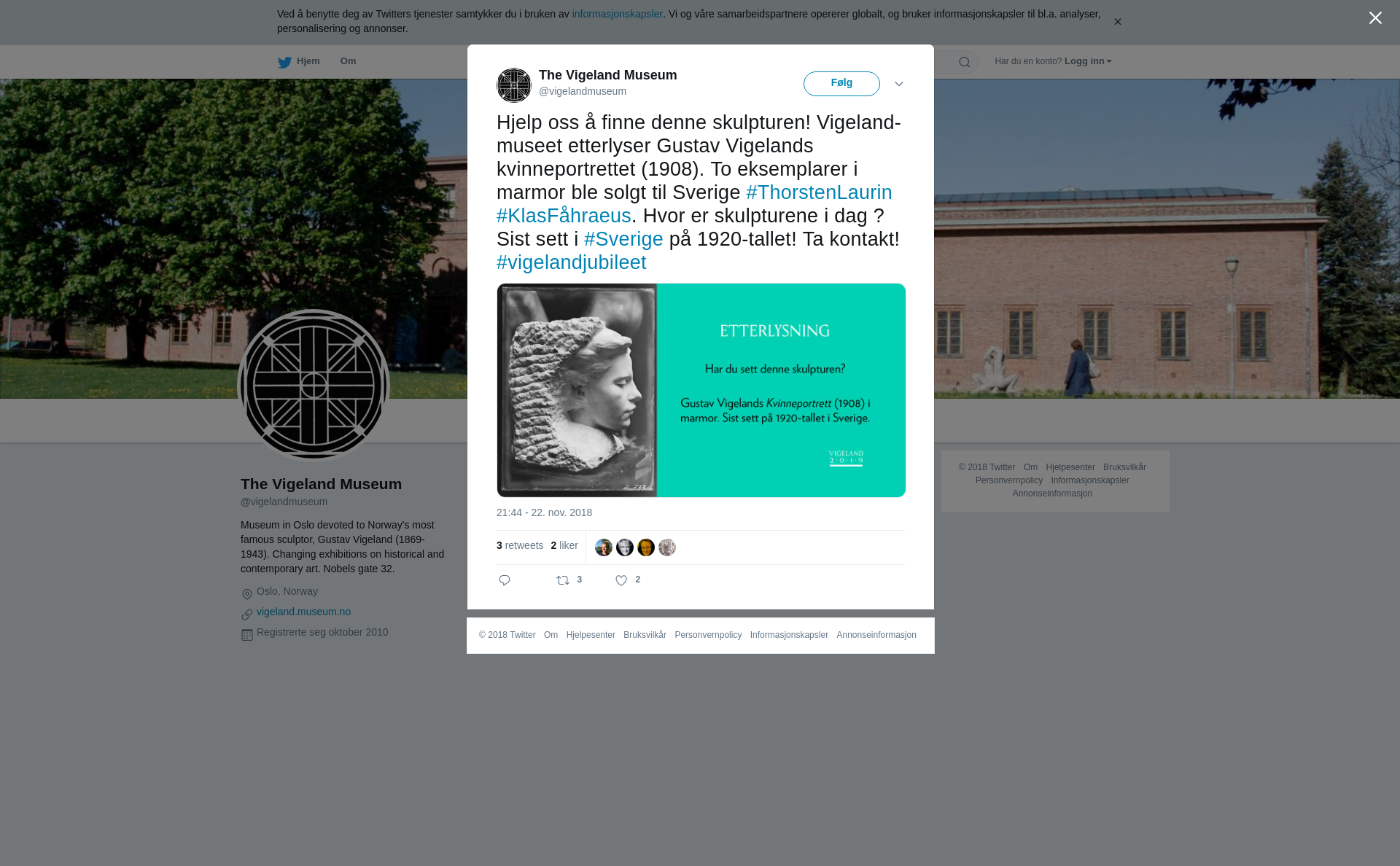 RT @vigelandmuseum: Hjelp oss å finne denne skulpturen! Vigeland-museet etterlyser Gustav Vigelands kvinneportrettet (1908). To eksemplarer i marmor ble solgt til Sverige #ThorstenLaurin #KlasFåhraeus. Hvor er skulpturene i dag ? Sist sett i #Sverige på 1920-tallet! Ta kontakt! #vigelandjubileet https://t.co/cBQSx2hj1s