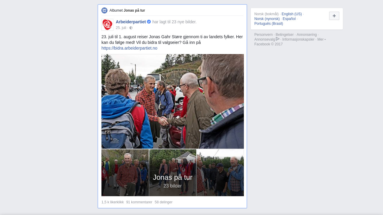23. juli til 1. august reiser Jonas Gahr Støre gjennom ti av landets fylker. Her kan du følge med! Vil du bidra til valgseier? Gå inn på https://bidra.arbeiderpartiet.no