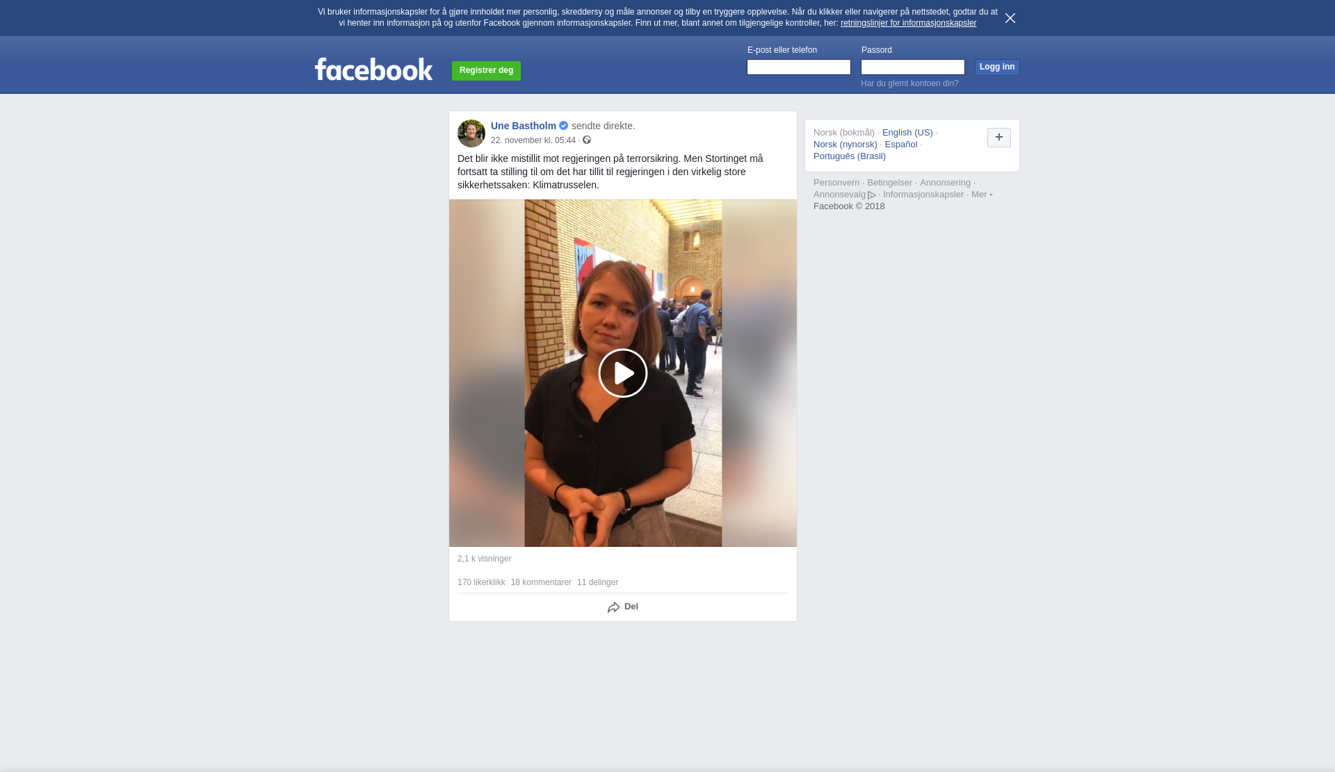 Orginalt innlegg på Facebook