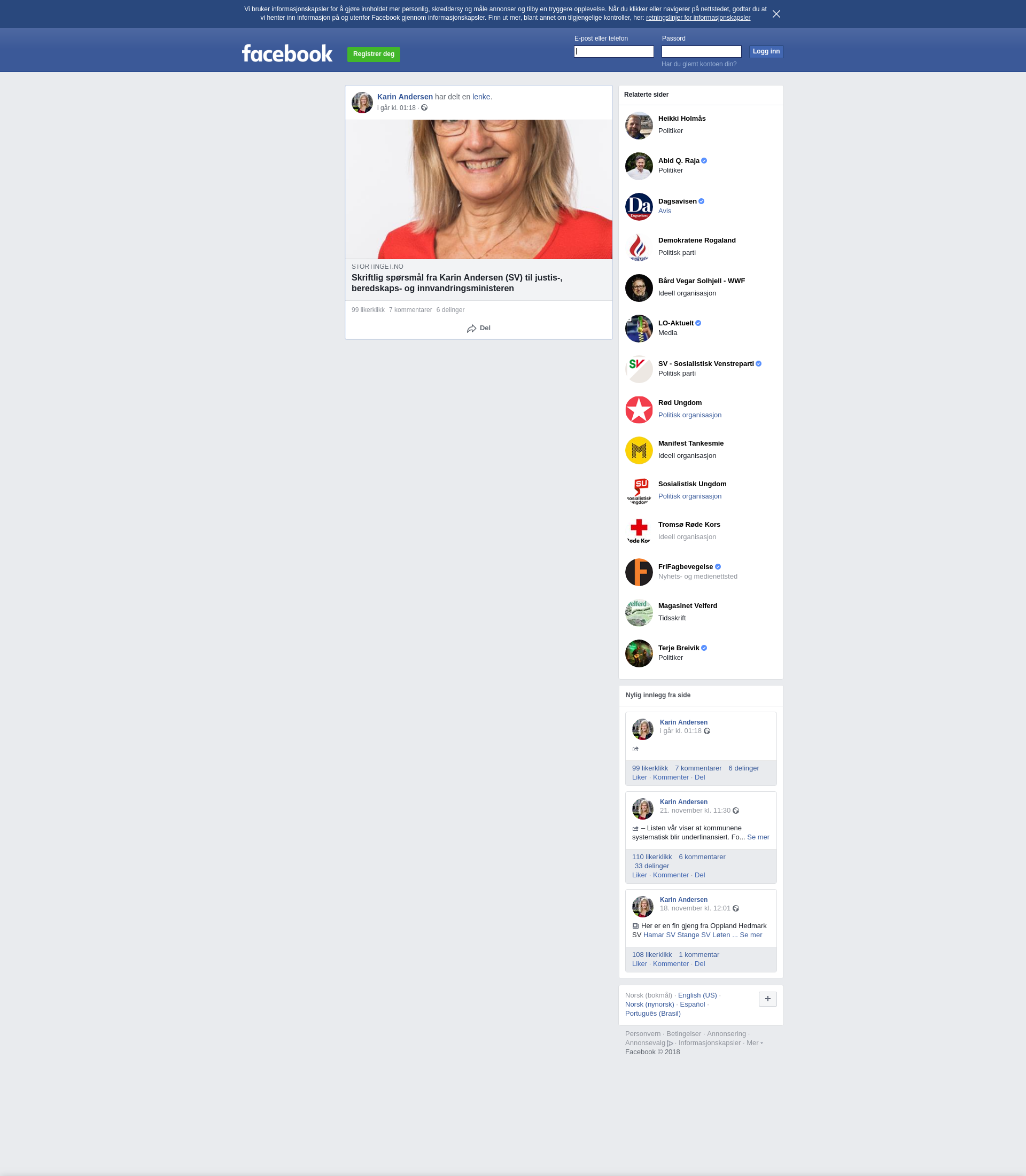 Skriftlig spørsmål fra Karin Andersen (SV) til justis-, beredskaps- og innvandringsministeren
