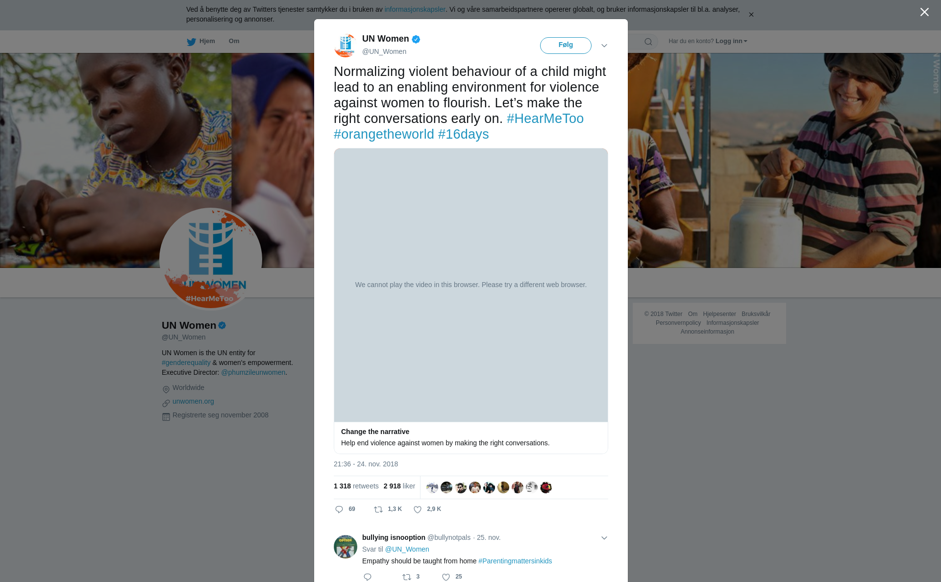 RT @UN_Women: Normalizing violent behaviour of a child might lead to an enabling environment for violence against women to flourish. Let’s make the right conversations early on. #HearMeToo #orangetheworld #16days https://t.co/ybDuZVQOJJ