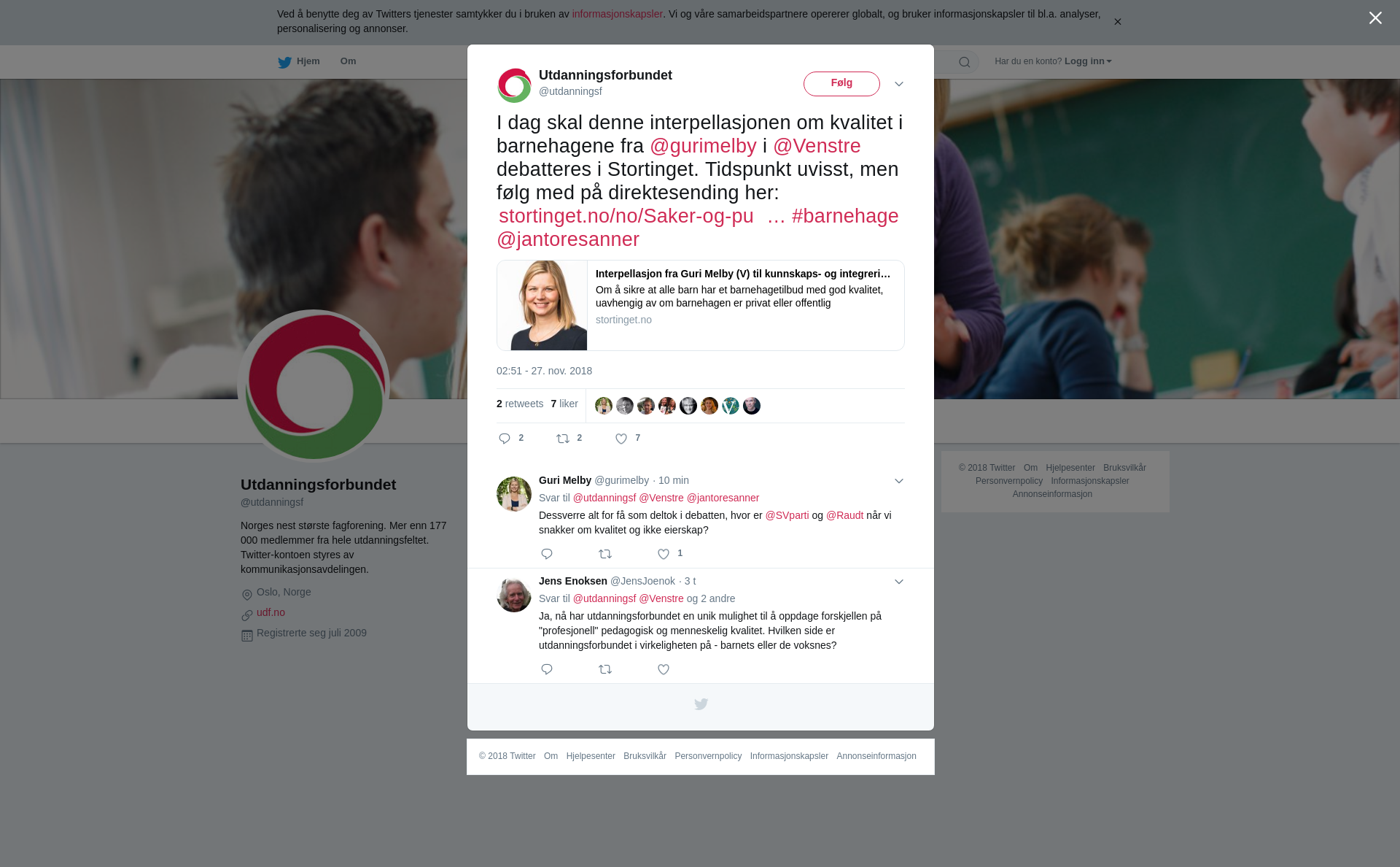 RT @utdanningsf: I dag skal denne interpellasjonen om kvalitet i barnehagene fra @gurimelby i @Venstre debatteres i Stortinget. Tidspunkt uvisst, men følg med på direktesending her: https://t.co/yHK6DVcR2v #barnehage @jantoresanner