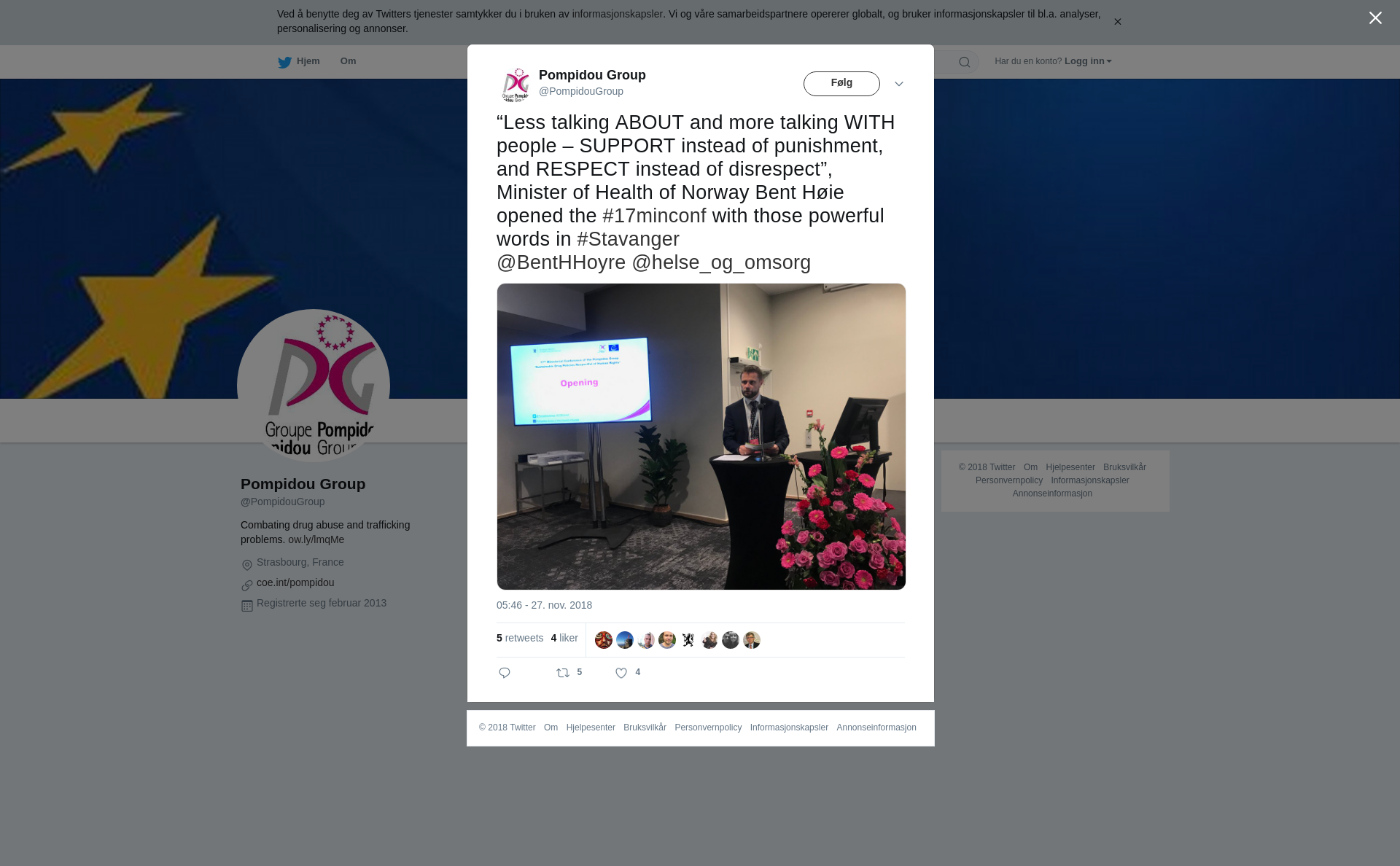 RT @PompidouGroup: “Less talking ABOUT and more talking WITH people – SUPPORT instead of punishment, and RESPECT instead of disrespect”, Minister of Health of Norway Bent Høie opened the #17minconf with those powerful words in #Stavanger