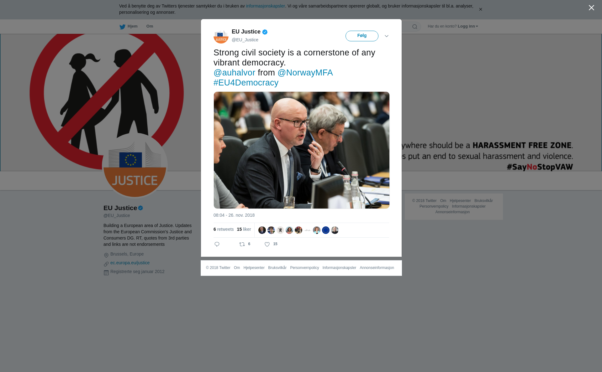 RT @EU_Justice: Strong civil society is a cornerstone of any vibrant democracy. @auhalvor from @NorwayMFA #EU4Democracy https://t.co/suN0Xh…