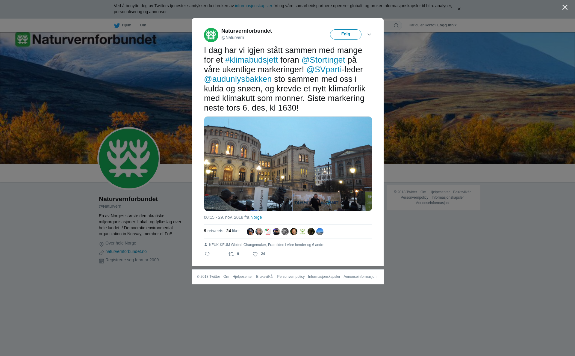 RT @Naturvern: I dag har vi igjen stått sammen med mange for et #klimabudsjett foran @Stortinget på våre ukentlige markeringer! @SVparti-leder @audunlysbakken sto sammen med oss i kulda og snøen, og krevde et nytt klimaforlik med klimakutt som monner. Siste markering neste tors 6. des, kl 1630! https://t.co/2IwrZ6zx7c