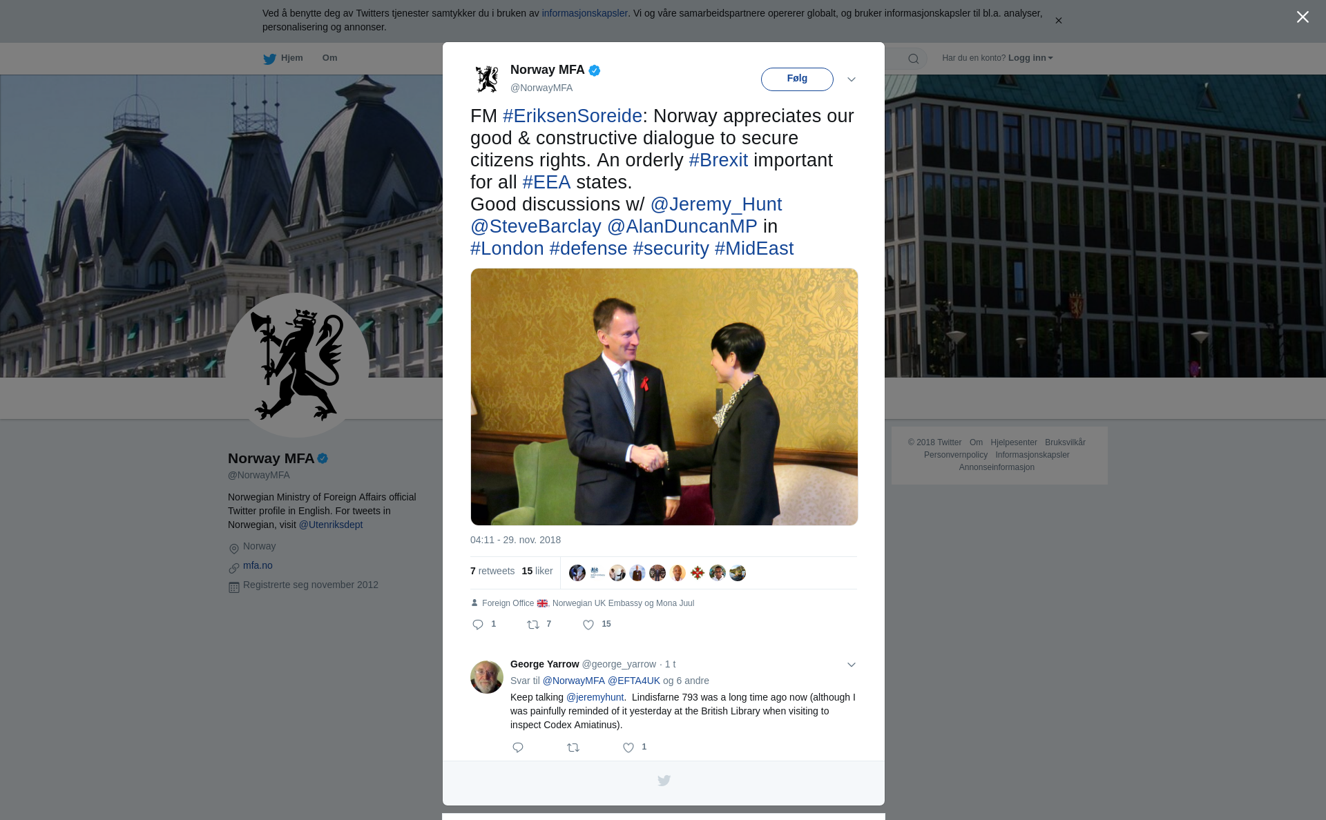FM #EriksenSoreide: Norway appreciates our good & constructive dialogue to secure citizens rights. An orderly #Brexit important for all #EEA states.
