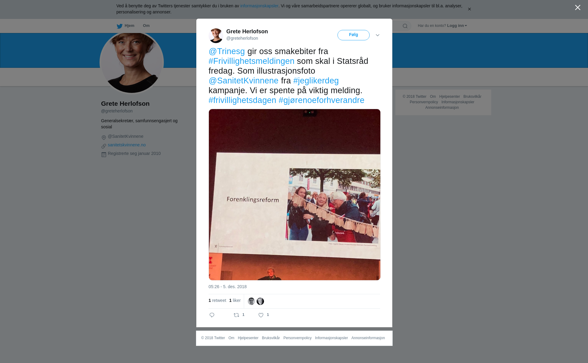 RT @greteherlofson: @Trinesg gir oss smakebiter fra #Frivillighetsmeldingen som skal i Statsråd fredag. Som illustrasjonsfoto @SanitetKvinnene fra #jeglikerdeg kampanje. Vi er spente på viktig melding. #frivillighetsdagen #gjørenoeforhverandre https://t.co/vZ8H92An03