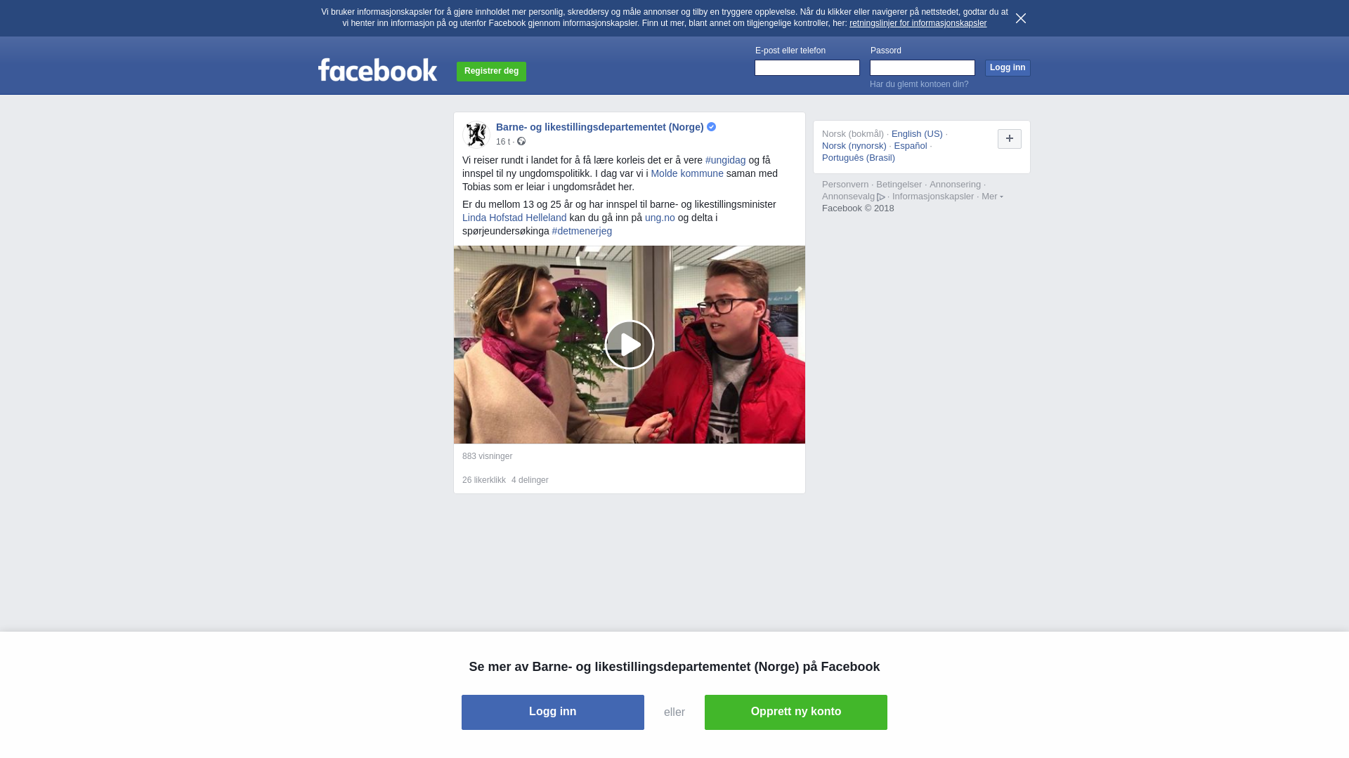 Er du mellom 13 og 25 år og har innspel til barne- og likestillingsminister Linda Hofstad Helleland kan du gå inn på ung.no og delta i spørjeundersøkinga #detmenerjeg