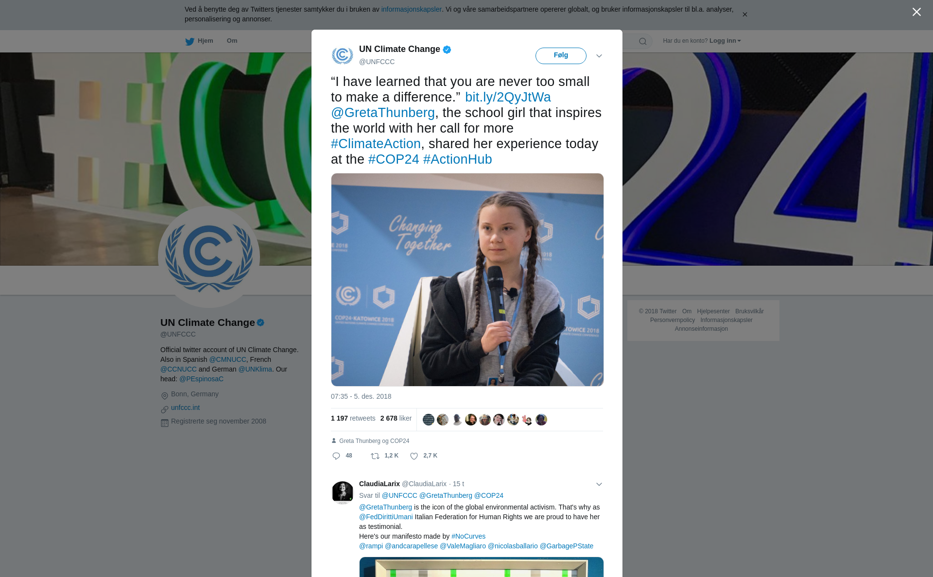 RT @UNFCCC: “I have learned that you are never too small to make a difference.” https://t.co/eGv19U5d21 @GretaThunberg, the school girl that inspires the world with her call for more #ClimateAction, shared her experience today at the #COP24 #ActionHub https://t.co/Oi4jusD4WC