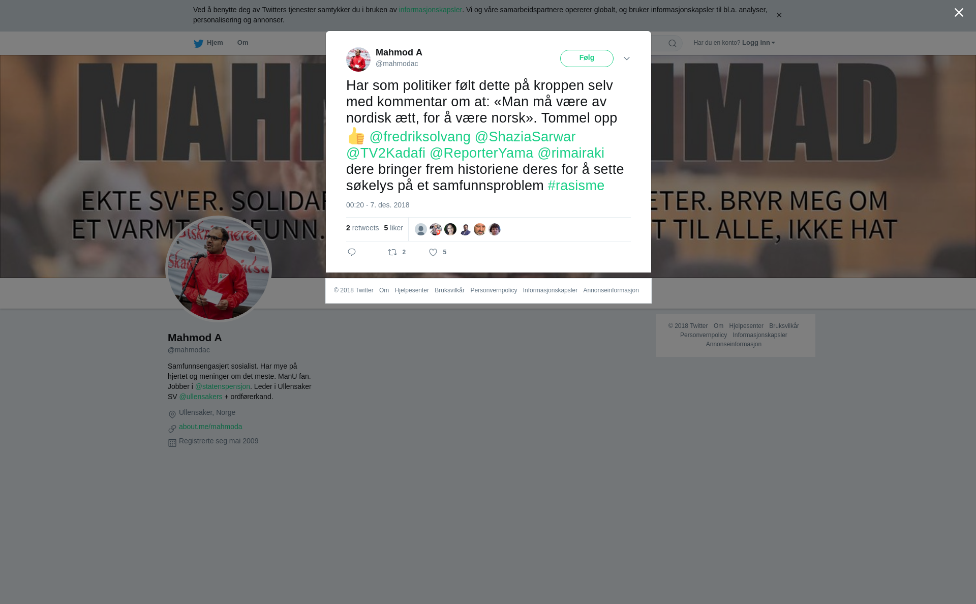 RT @mahmodac: Har som politiker følt dette på kroppen selv med kommentar om at: «Man må være av nordisk ætt, for å være norsk». Tommel opp 👍 @fredriksolvang @ShaziaSarwar @TV2Kadafi @ReporterYama @rimairaki dere bringer frem historiene deres for å sette søkelys på et samfunnsproblem #rasisme