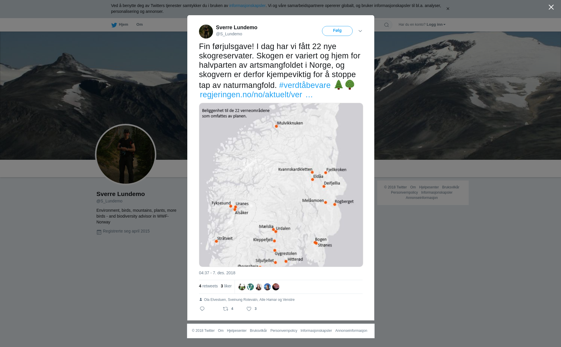 RT @S_Lundemo: Fin førjulsgave! I dag har vi fått 22 nye skogreservater. Skogen er variert og hjem for halvparten av artsmangfoldet i Norge, og skogvern er derfor kjempeviktig for å stoppe tap av naturmangfold. #verdtåbevare 🌲🌳