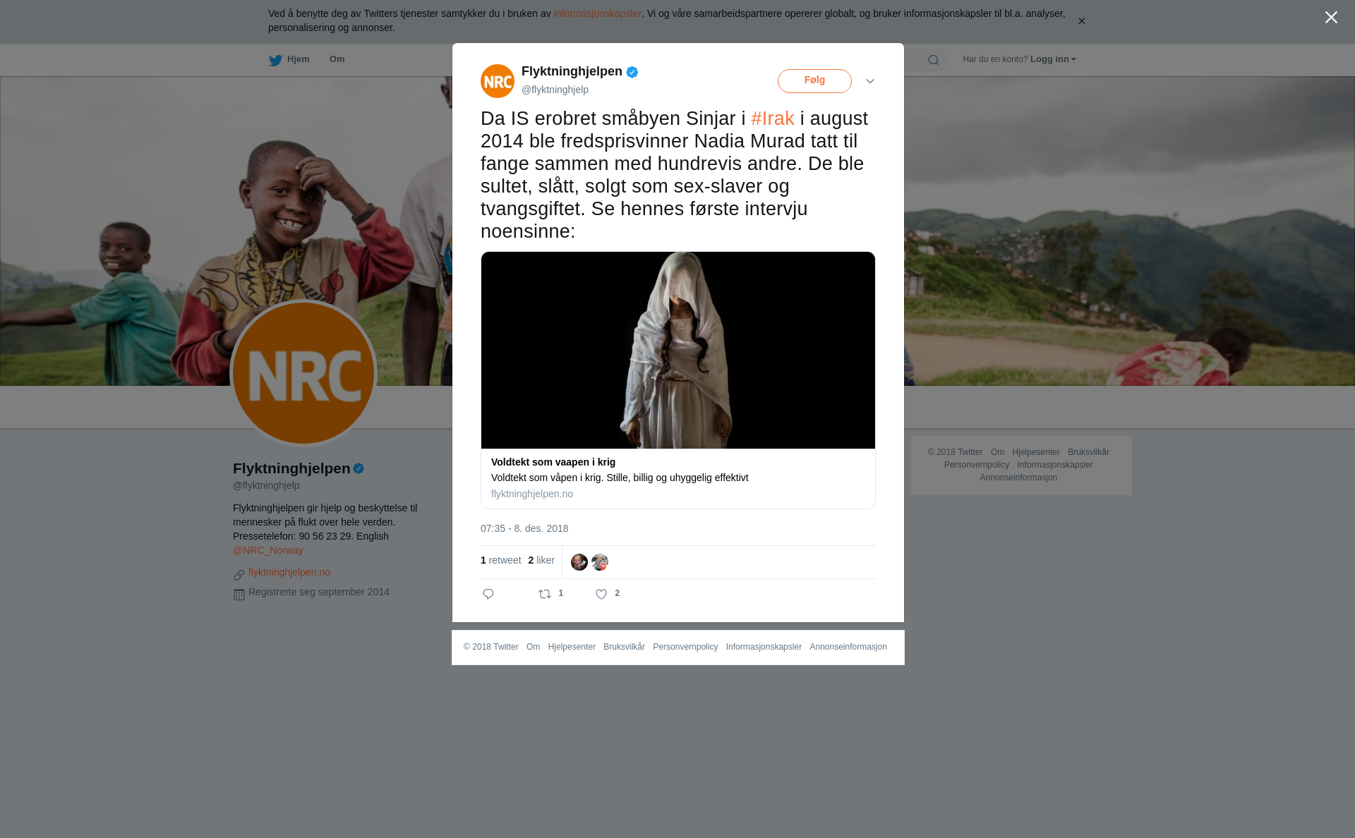 RT @flyktninghjelp: Da IS erobret småbyen Sinjar i #Irak i august 2014 ble fredsprisvinner Nadia Murad tatt til fange sammen med hundrevis andre. De ble sultet, slått, solgt som sex-slaver og tvangsgiftet. Se hennes første intervju noensinne: https://t.co/3EhhnI84sX